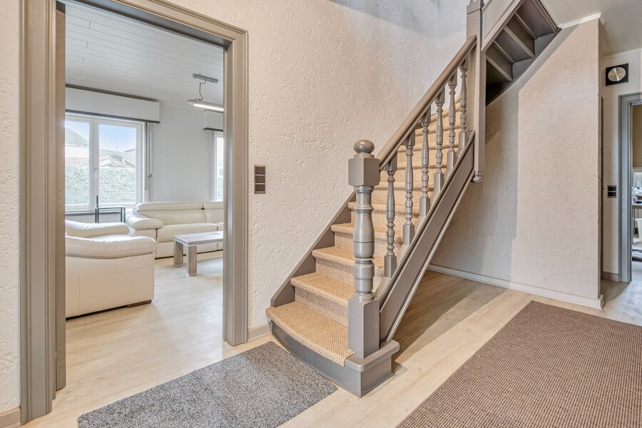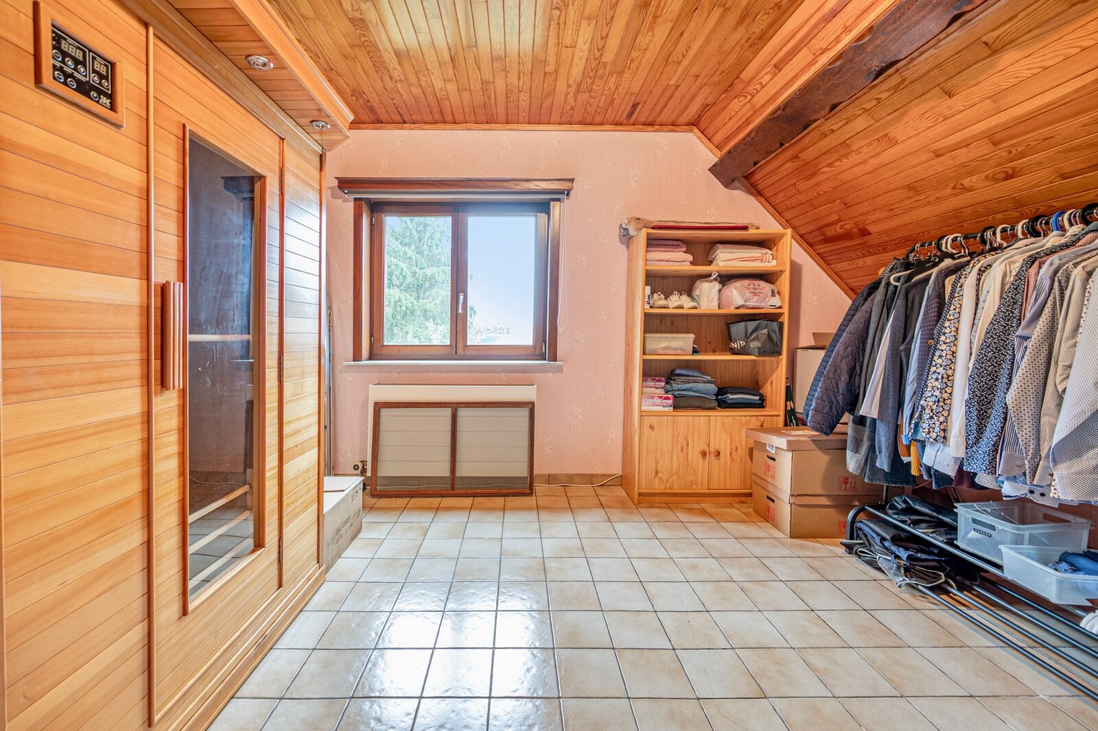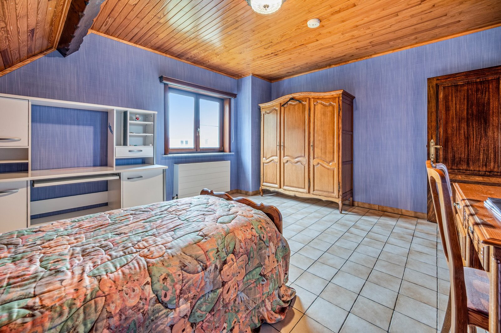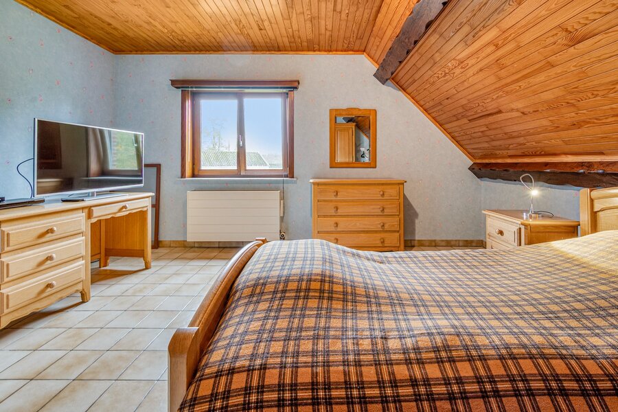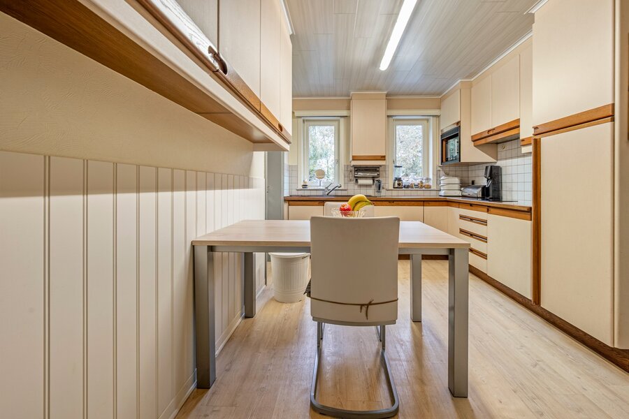Dit landhuis met uitzonderlijke grond aan werd opgetrokken in 1988 met zeer degelijke en duurzame materialen in een mooie landelijke stijl. De indeling is als volgt: inkomhal met gastentoilet, aangename en gerenoveerde leefruimte met elekrische sfeerhaard, onderhouden keuken met voldoende kastruimte en toestellen waar men ook kan eten, veranda met knap uitzicht over de tuin, aparte berging/wasplaats, grote inpandige garage. Op de verdieping bevinden zich 4 grote slaapkamers op een tegelvloer, ruime badkamer met dubbele lavabo, ligbad en douche. Valluik naar de geïsoleerde zolder wat ideaal is als bergruimte. Buiten: oprit voor verschillende autos, aangelegde tuin met vijver, groot stuk weiland, stallingen, bos,...MAAK SPOEDIG UW AFSPRAAK OM DEZE EXCLUSIEVE EIGENDOM TE BEZOEKEN!