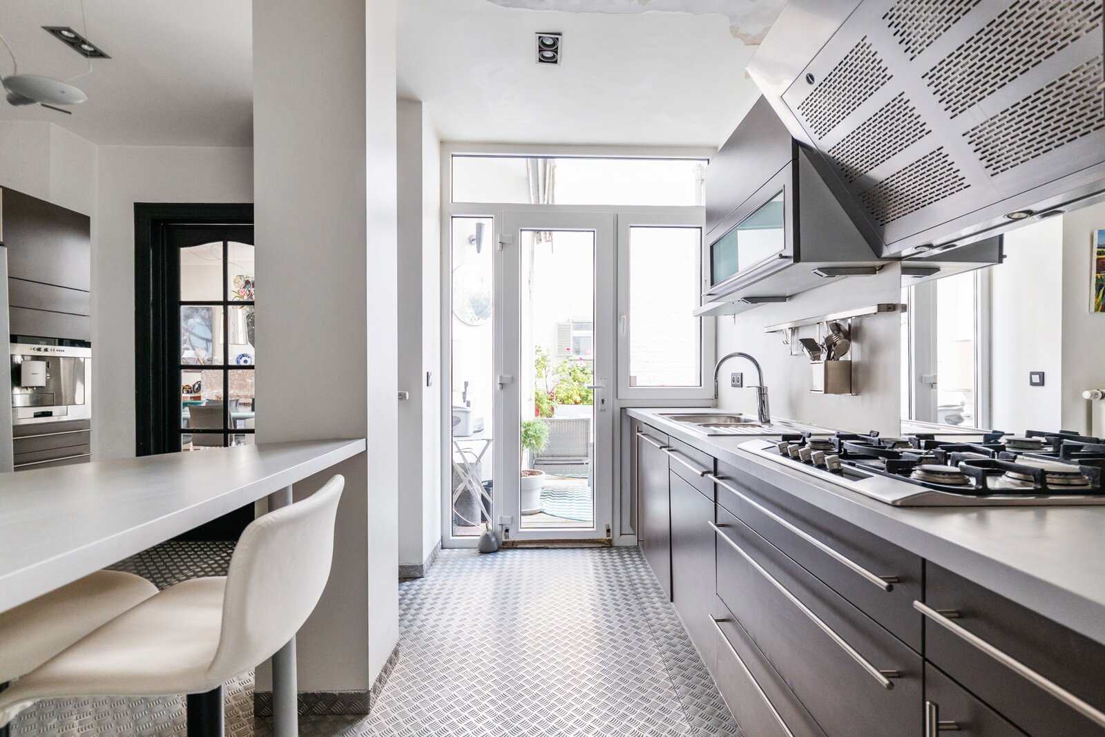Etterbeek: Victoire - Junot presenteert deze prachtige begane grond met binnenplaats, gelegen op een bevoorrechte locatie op een steenworp afstand van het Jubelpark, winkels, metro en scholen. Het appartement heeft een totale oppervlakte van ± 240 m² in een elegant Haussmann-gebouw en bestaat uit een ruime inkomhal, een ruime woonkamer met veel natuurlijk licht dankzij de grote ramen die uitkijken op de binnenplaats en de buitenwereld, een eetkamer, een aparte volledig ingerichte keuken met ontbijthoek, een kantoorruimte, een nachthal, een technische ruimte met individuele gasketel, een wasruimte, een master suite met dressing en badkamer, 3 slaapkamers en 2 doucheruimtes. Een zeer mooie binnenplaats met bomen en een automatische zonnetent. Het appartement verkeert in perfecte staat en beschikt tevens over een dienstbodekamer en 2 grote kelders. Mogelijkheid om een nabijgelegen locatie te verwerven. PEB F