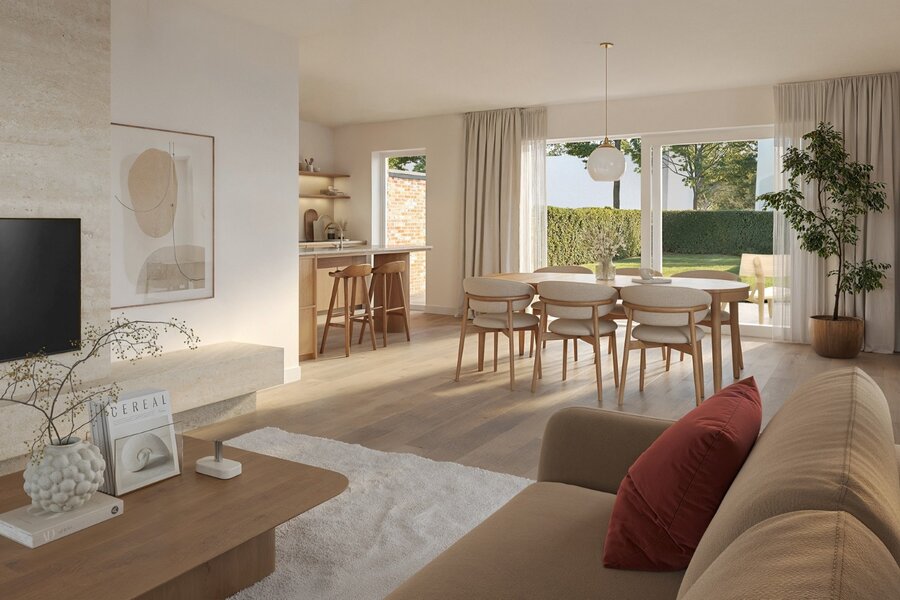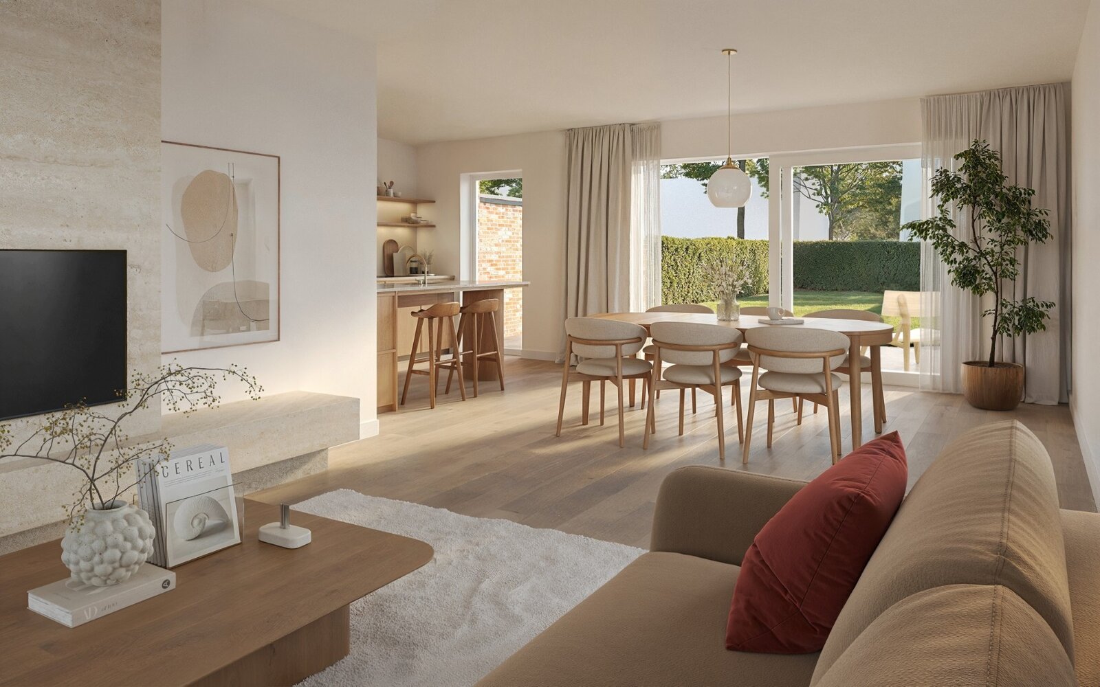 In het binnengebied van de Bergbosstraat en Notelaarstraat in Merelbeke bouwt Danneels stijlvolle, energiezuinige gezinswoningen in hedendaags landelijke architectuur.