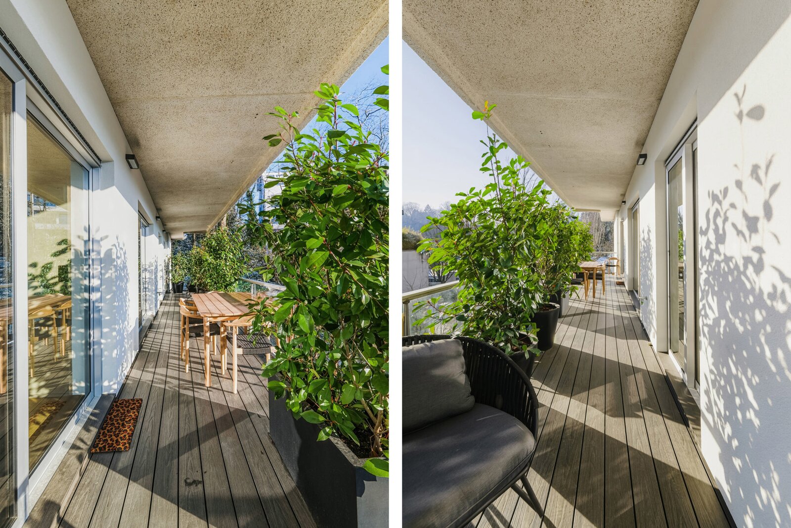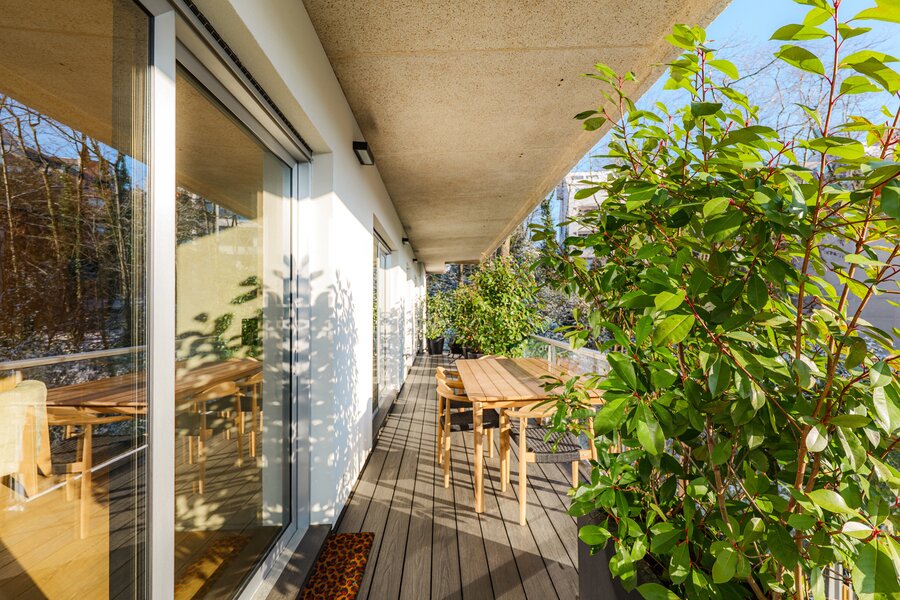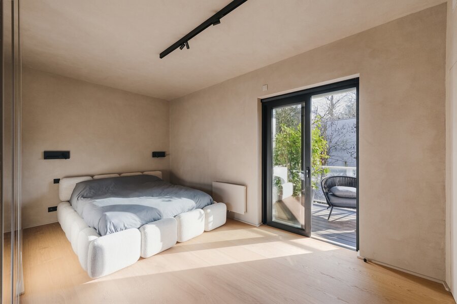 Drie terrassen met een totale oppervlakte van ±50 m² (Oost, Zuid, West) bieden open en groene uitzichten, met toegang vanuit elke kamer.