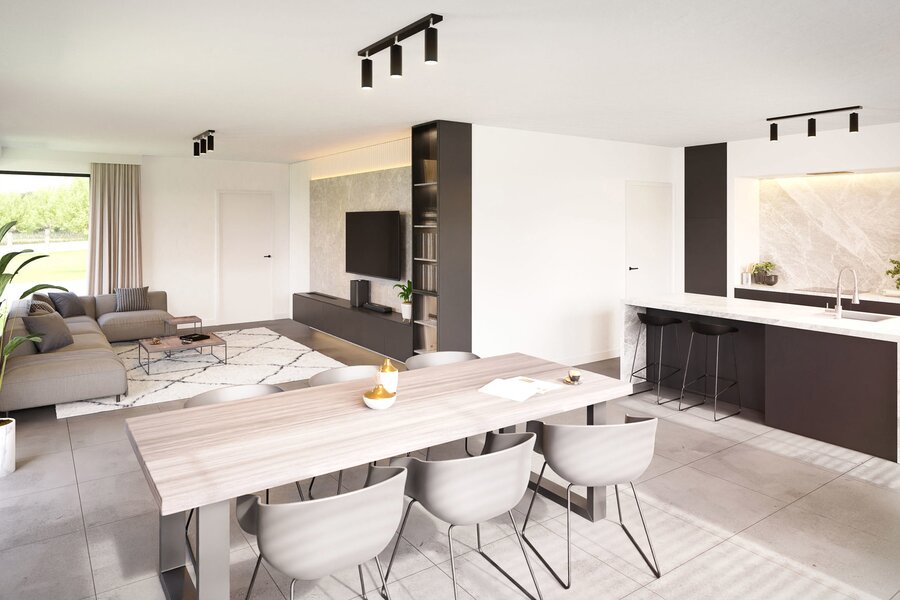 Deze energiezuinige woningen bieden alles wat je nodig hebt, en nog meer. Je kunt de afwerking helemaal naar jouw eigen smaak en wensen laten uitvoeren, zodat jouw nieuwe huis echt "your home" wordt. De woningen zijn voorzien van een ruime inkomhal met vestiaire, een gezellige living met een open en volledig ingerichte keuken, een handige berging/wasplaats, een bureau, 3 comfortabele slaapkamers, 2 moderne badkamers en 2 aparte toiletten.
