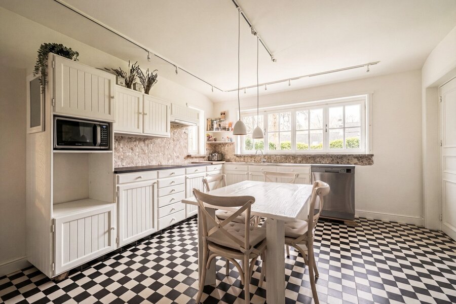 De woning ademt de typische charme van een Latemse villa, met authentieke accenten en een warme, tijdloze uitstraling. Met een bewoonbare oppervlakte van 282 m² ontvouwt zich een doordachte indeling waarin licht, volume en de connectie met de tuin centraal staan.