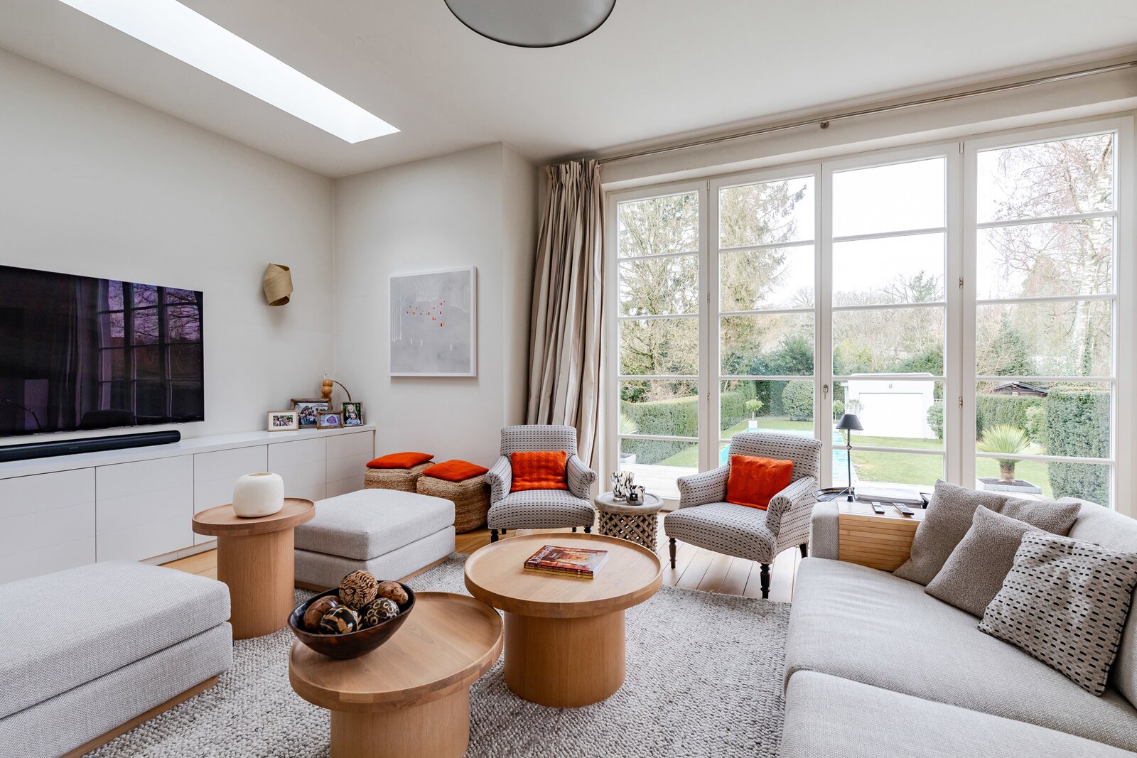 In een mooie laan in de wijk Prince d'Orange, charmante klassieke villa met 3 gevels, die in 2015 volledig is gerenoveerd. Gelegen op een terrein van +/- 6 are met een zwembad. De bewoonbare oppervlakte van +/- 220 m² is verdeeld over mooie ontvangstruimten, een superuitgeruste keuken, 5 slaapkamers en 2 badkamers. Bijgebouw met fietsenstalling. Parkeerplaats voor 1 auto. EPC E
