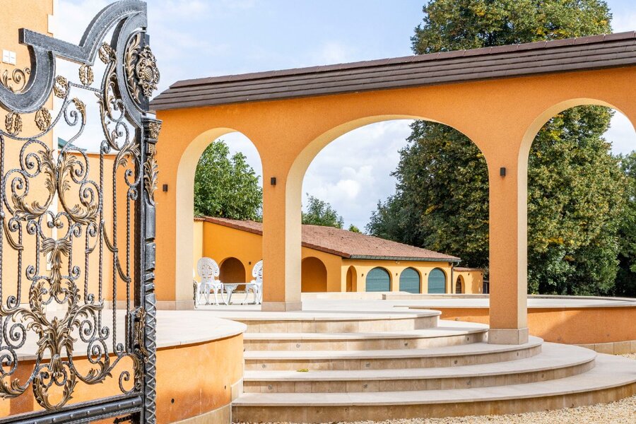 - Uitgestrekte terrassen met uitzicht op vijver en parktuin