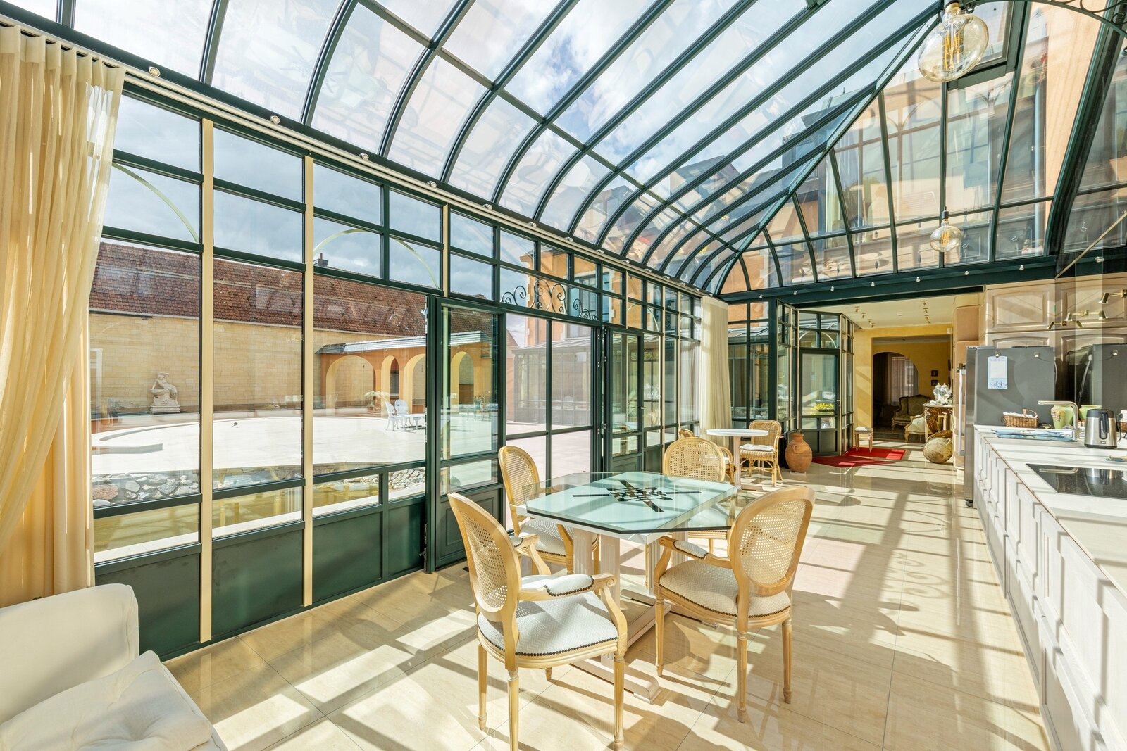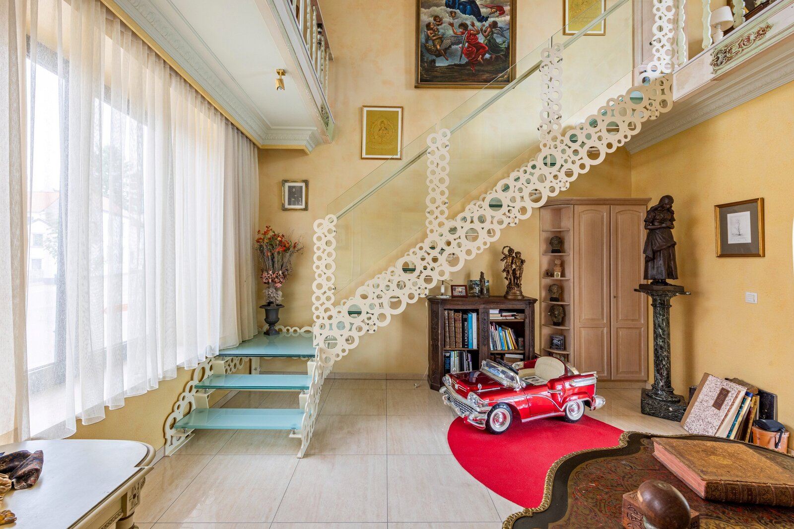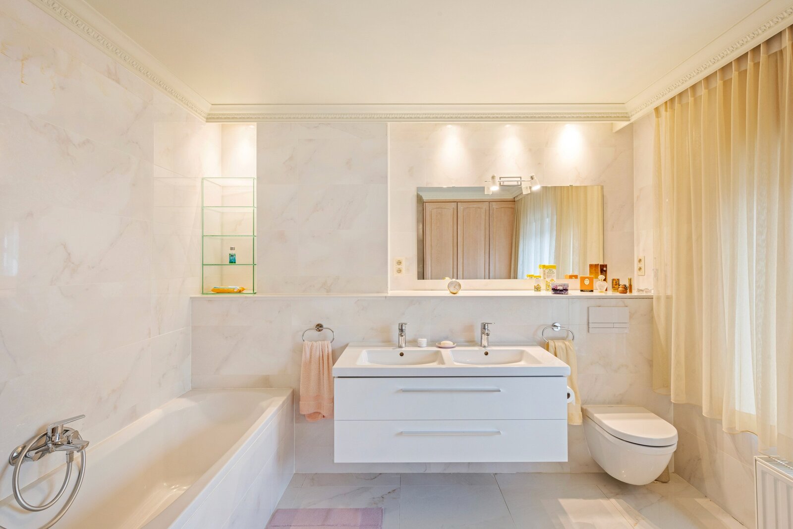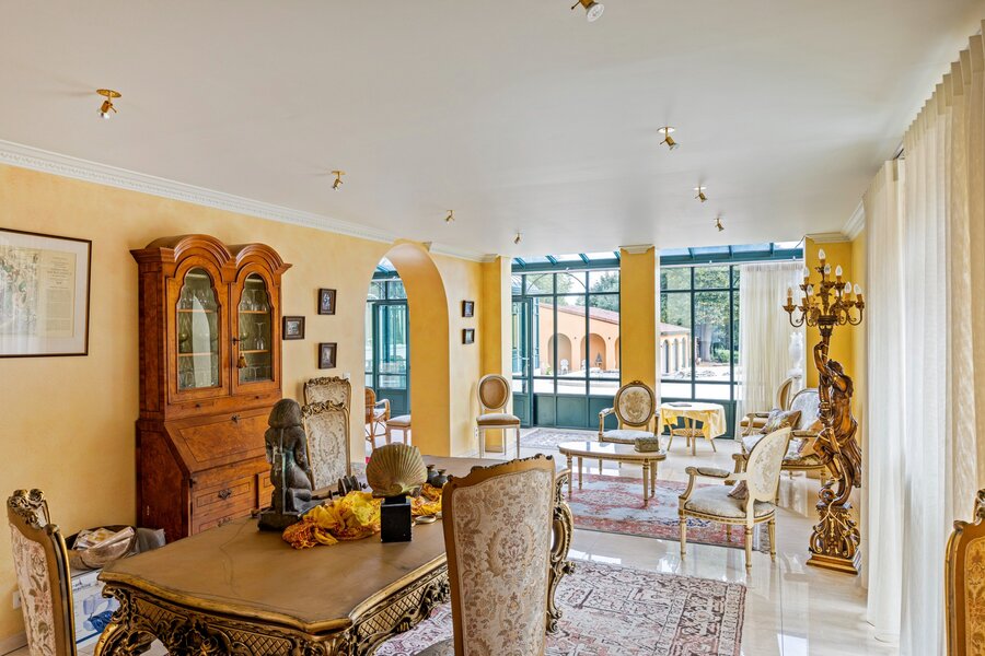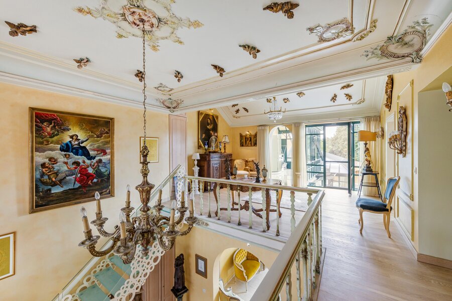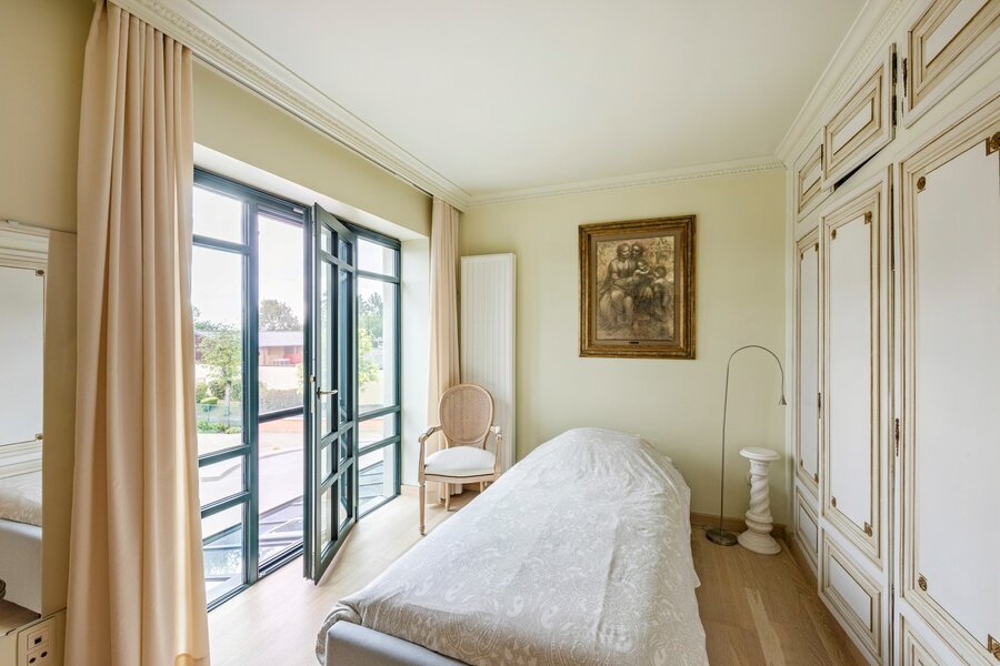 De eyecatcher is zonder twijfel de lichte tuinkamer die volledig over de achterzijde doorloopt. Dankzij de grote raampartijen geniet u hier van een onbelemmerd zicht op de vijver en het parkdomein. Het aansluitende verhoogde terras versterkt dit gevoel van openheid en biedt een heerlijke plek om te ontspannen of gasten te ontvangen. Met zijn omvangrijk perceel en uitzonderlijke uitstraling is deze villa uitermate geschikt voor wie zoekt naar een exclusieve thuisbasis. Tegelijk biedt de ligging, ruimte en sfeer ook mogelijkheden voor professionele of commerciële doeleinden mits het verkrijgen van de juiste vergunning.