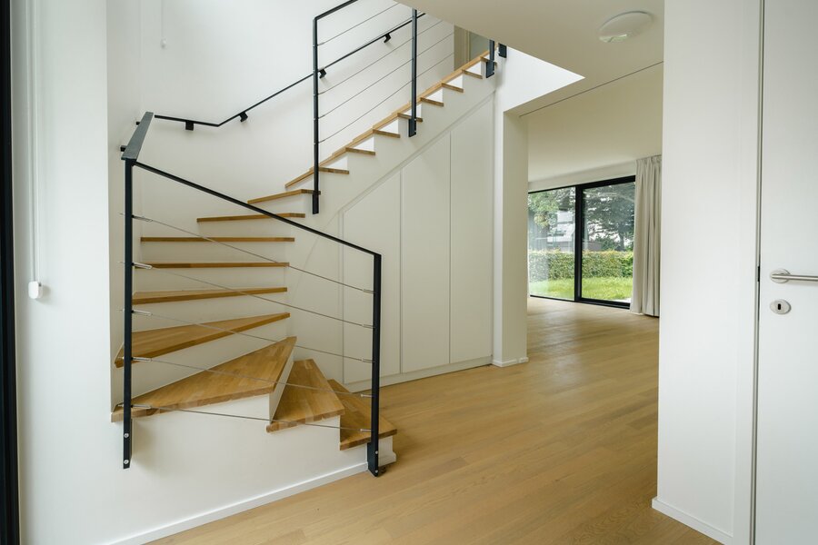 Deze nieuwe eengezinswoning met een bruto vloeroppervlakte (EPC) van ± 230 m² ligt in de directe nabijheid van het Lycée Français en de wijk Prince van Oranje, in een wooncomplex met drie of vier slaapkamers en een aangename tuin, midden in het beschermde Natura 2000-gebied.