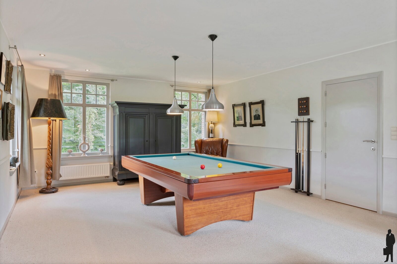 Slaapkamer 1: ca. 40 m², momenteel ingericht als kantoor/biljartkamer met gashaard
