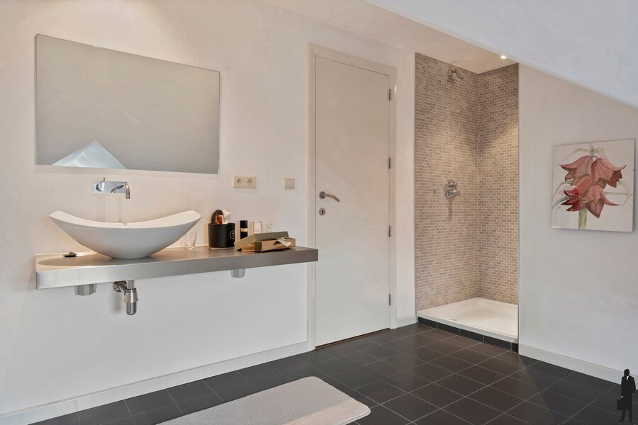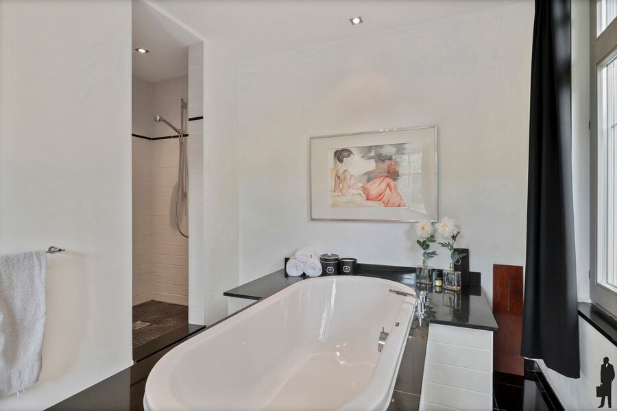 - Tweede badkamer voorzien van wastafel, ligbad en douche