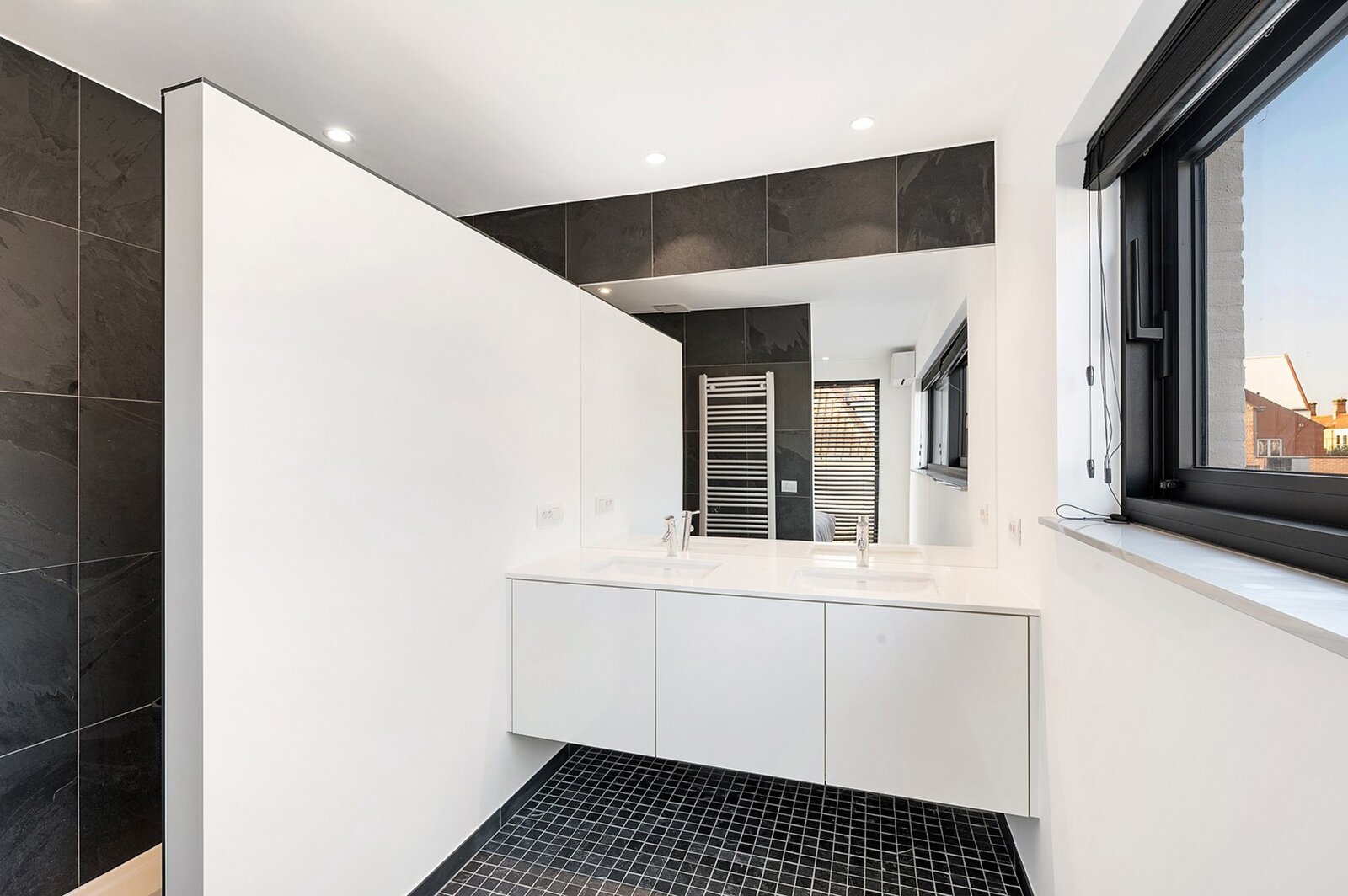 Prachtige recente koppelvilla met hedendaagse architectuur gelegen te oud Knokke. Indeling: Inkomhal met vestiaire en toilet. Ruime eetkamer met open volledig geïnstalleerde keuken (Miele toestellen) met toegang tot het terras en zonnige tuin. Berging/wasplaats. Gezellige en lichtrijke woonkamer. Praktische berging. Op de eerste verdieping: Master bedroom met dressing en aansluitende douchekamer (dubbele lavabo en douche). Tweede ruime slaapkamer. Afzonderlijke douchekamer (dubbele lavabo, douche en toilet). Op verdiep 2: 3de ruime slaapkamer. Technische berging. Ruime garage voor één wagen (oplaadpunt elektrische wagen) en fietsen. Parkeermogelijkheid voor 3 wagens. Vloerverwarming, smeedijzeren wanden, zonnepanelen, laadpaal, airco, alarm, ... Prijs-kwaliteit, zeker één van onze favorieten.