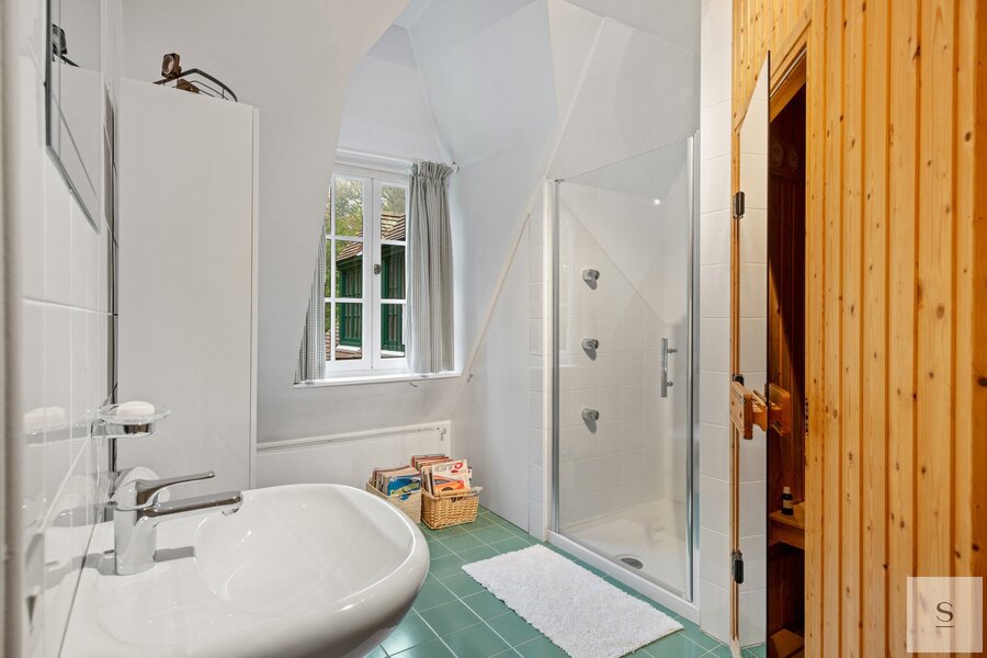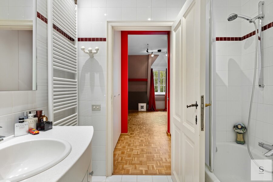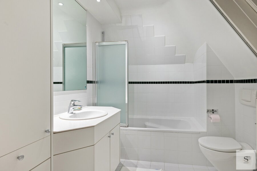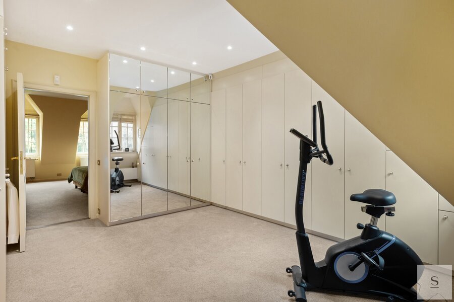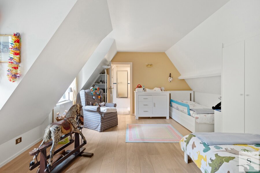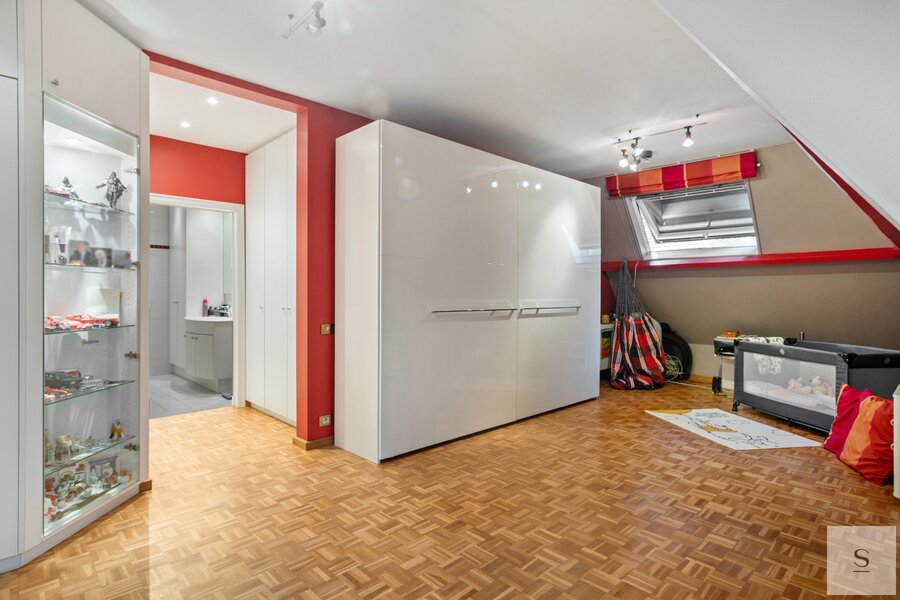 Op de 1ste verdieping vindt u een slaapkamer met badkamer, een logeerkamer met ensuite badkamer en een kinderkamer met eigen badkamer. De master bedroom met dressing en luxe badkamer biedt optimale privacy. Via deze ruimte komt u bij de tussengang en de diensttrap naar de conciërgewoning.
