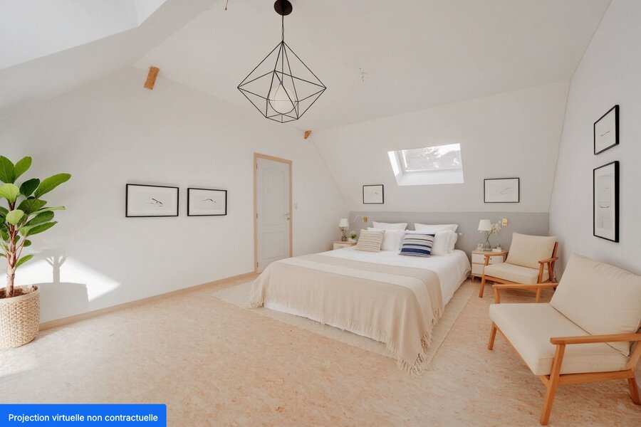 Nieuw dak, gerestaureerd dakgebinte, geoptimaliseerde isolatie, dubbele beglazing. EPC B.