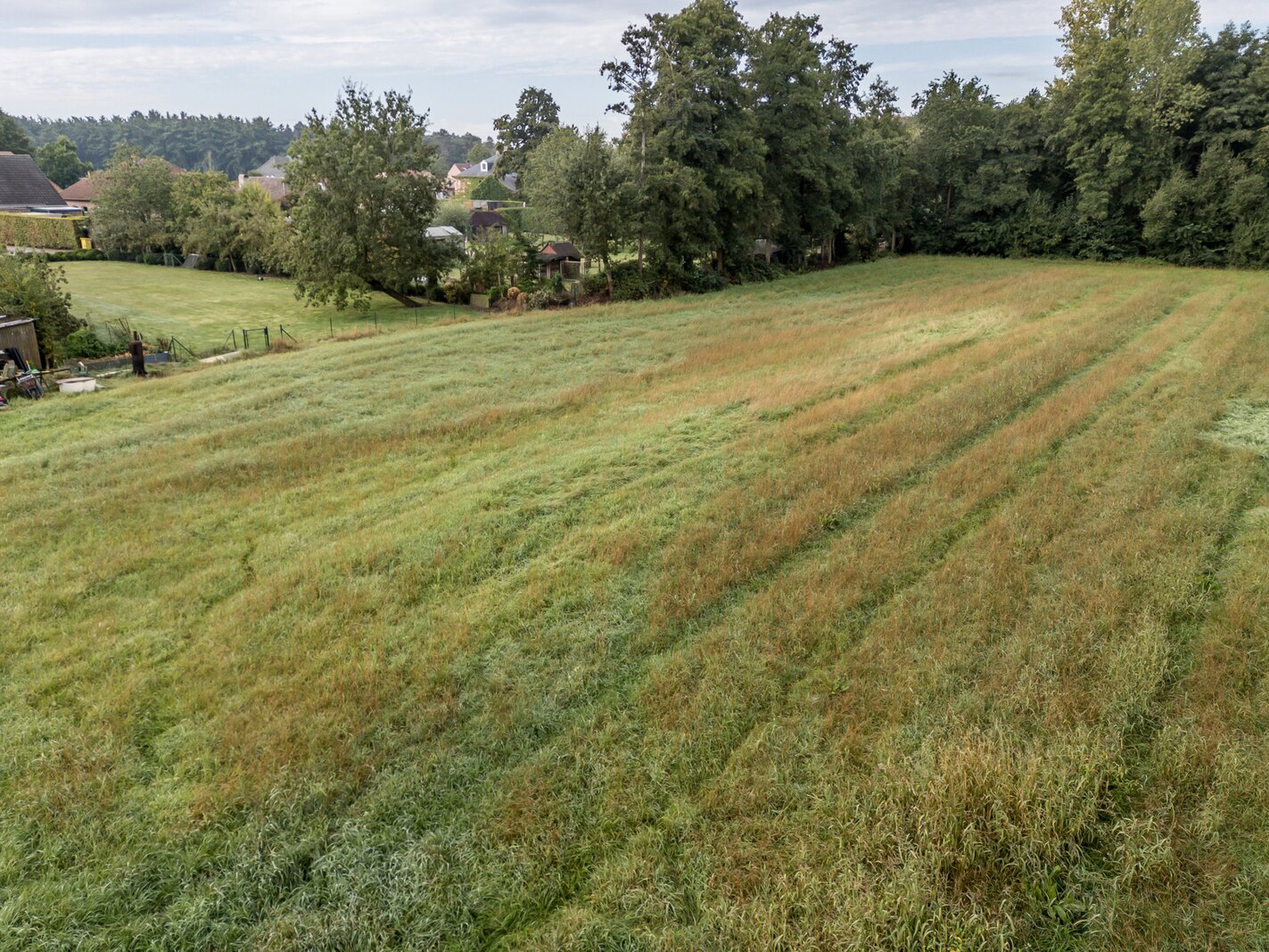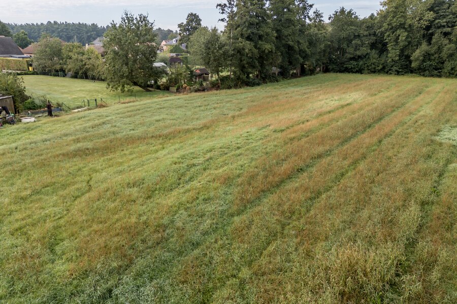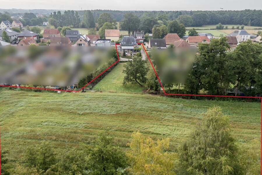 Achteraan is er een grasveld (1300m²) die aansluit met het perceel weiland van 4040m² . De totale oppervlakte van het perceel is 7143m². zowel via het eigen perceel als langs een achtergelegen servitudeweg is het weiland bereikbaar.
