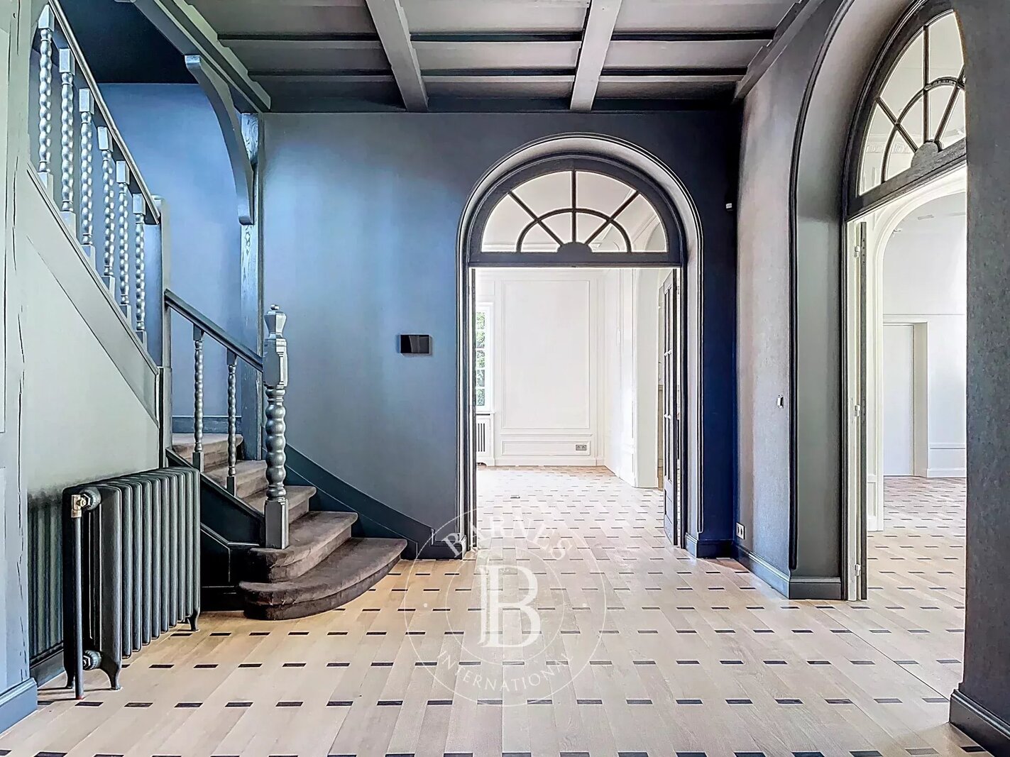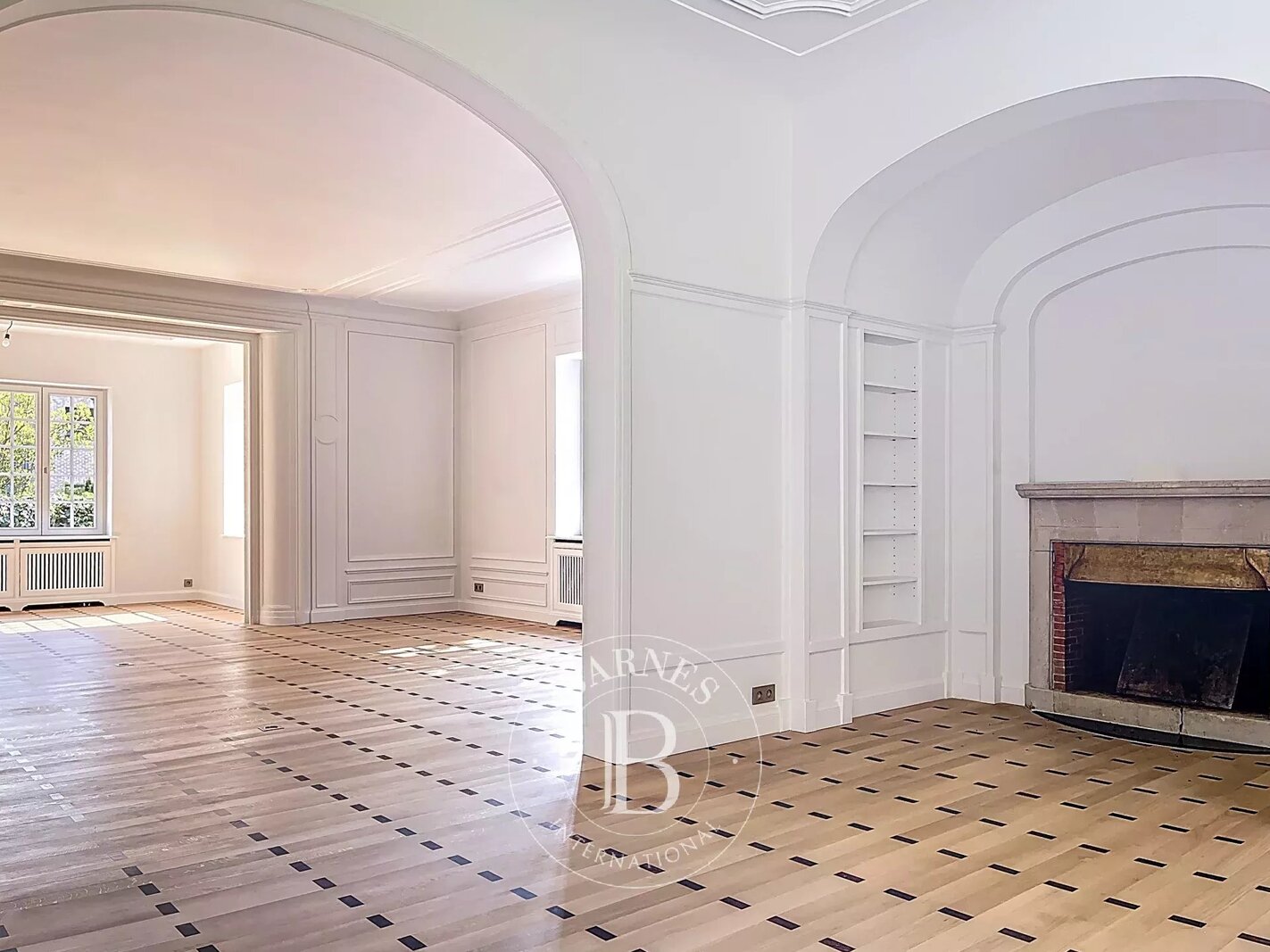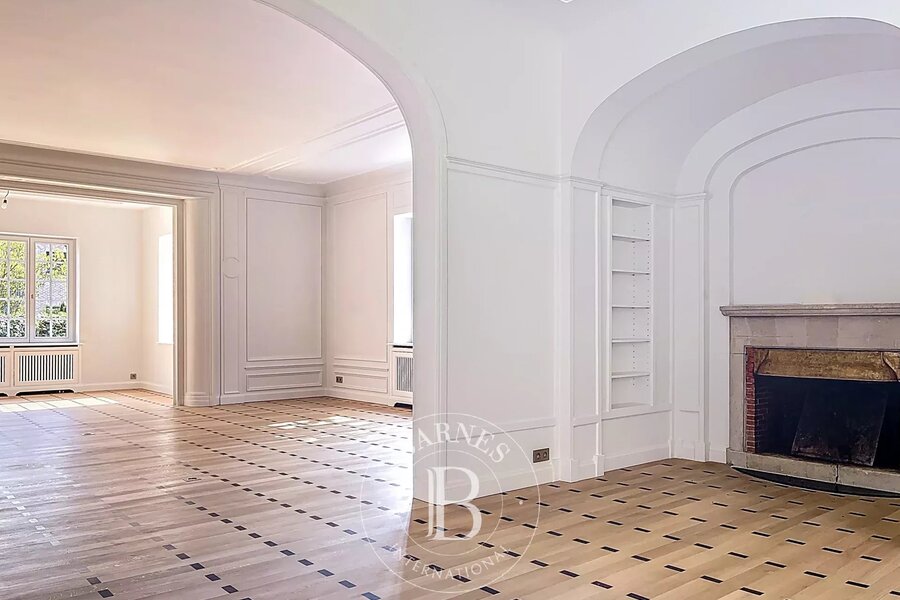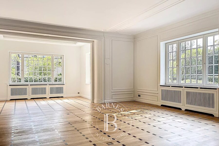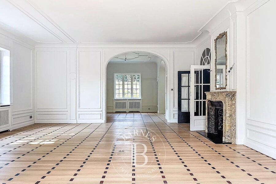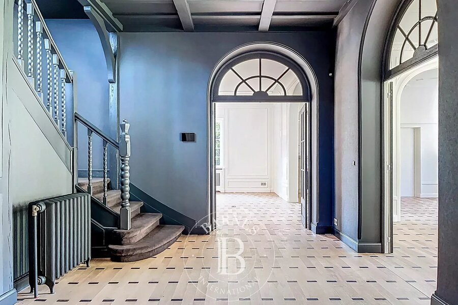 Bij binnenkomst is er een garderobe en gastentoilet, evenals directe toegang tot een kantoor. De ontvangsthal leidt vervolgens naar een opeenvolging van drie salons en de eetkamer. Deze kamers hebben nog antieke elementen die zijn opgeknapt om de woonkamer een authentieke charme te geven.