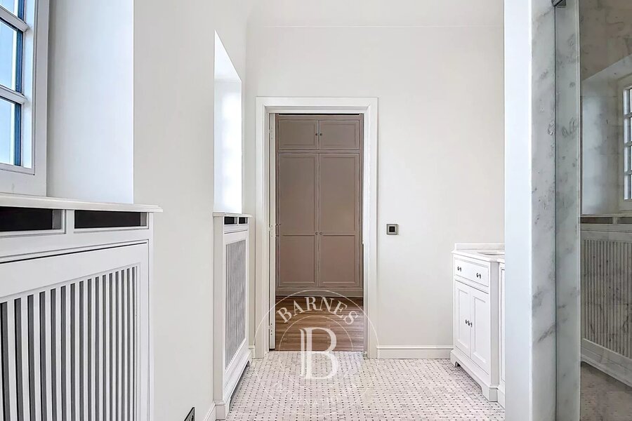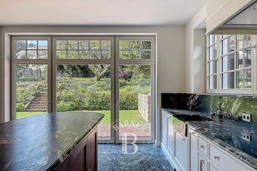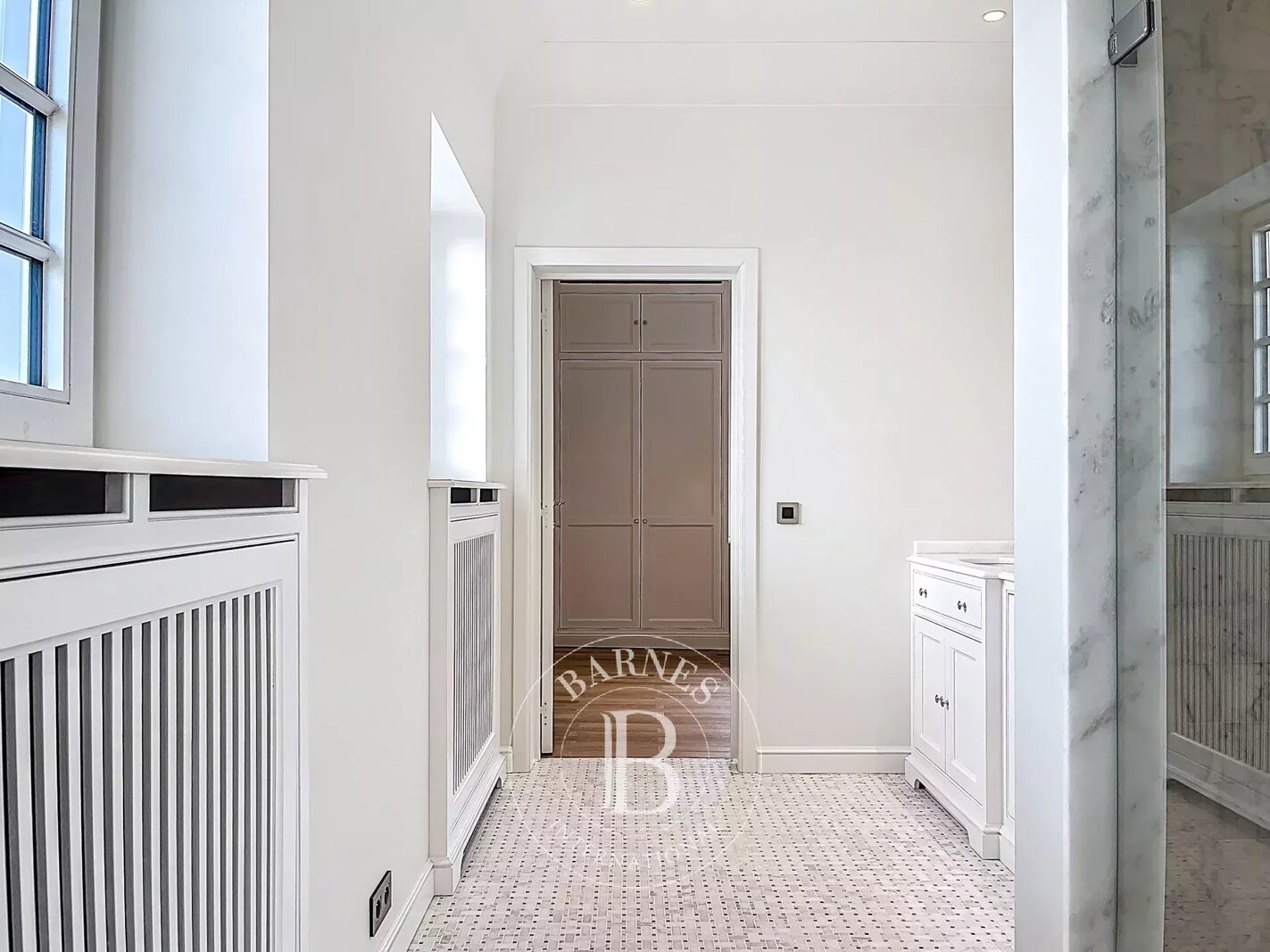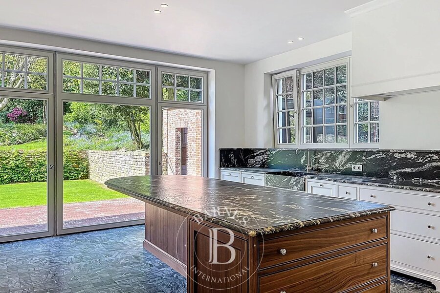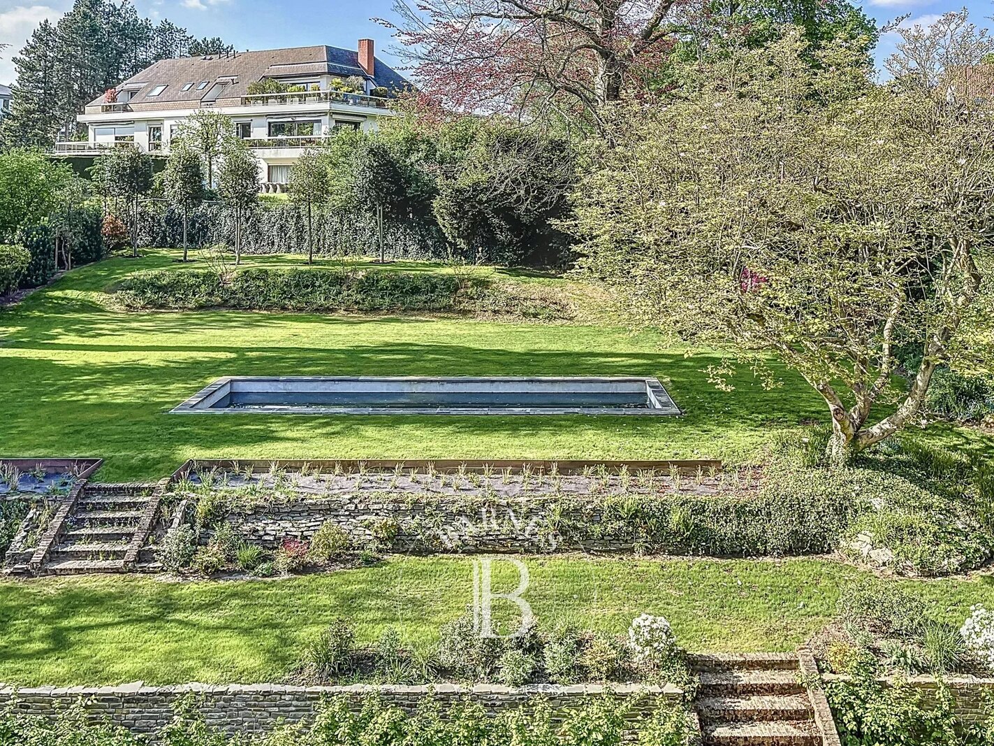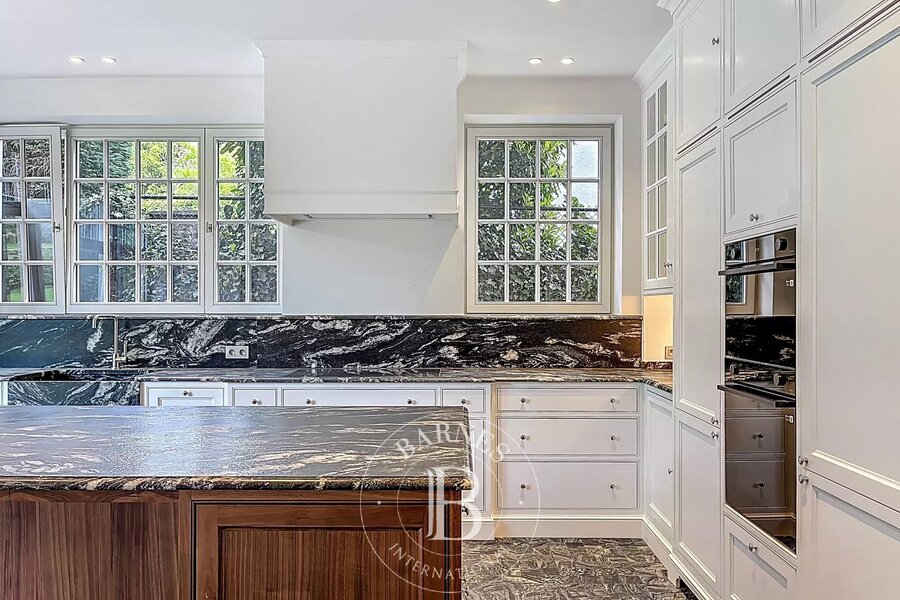 In de kelder vind je een wasruimte, een garage voor twee auto's, een wijnkelder en opslagruimte. Tot slot is er een conciërgewoning met kitchenette, doucheruimte en kleedkamer, volledig onafhankelijk.