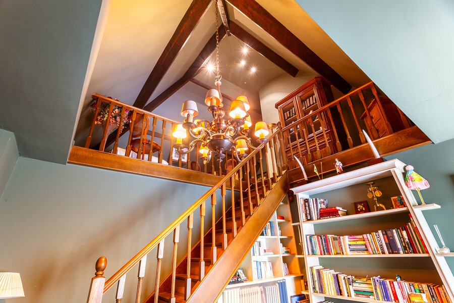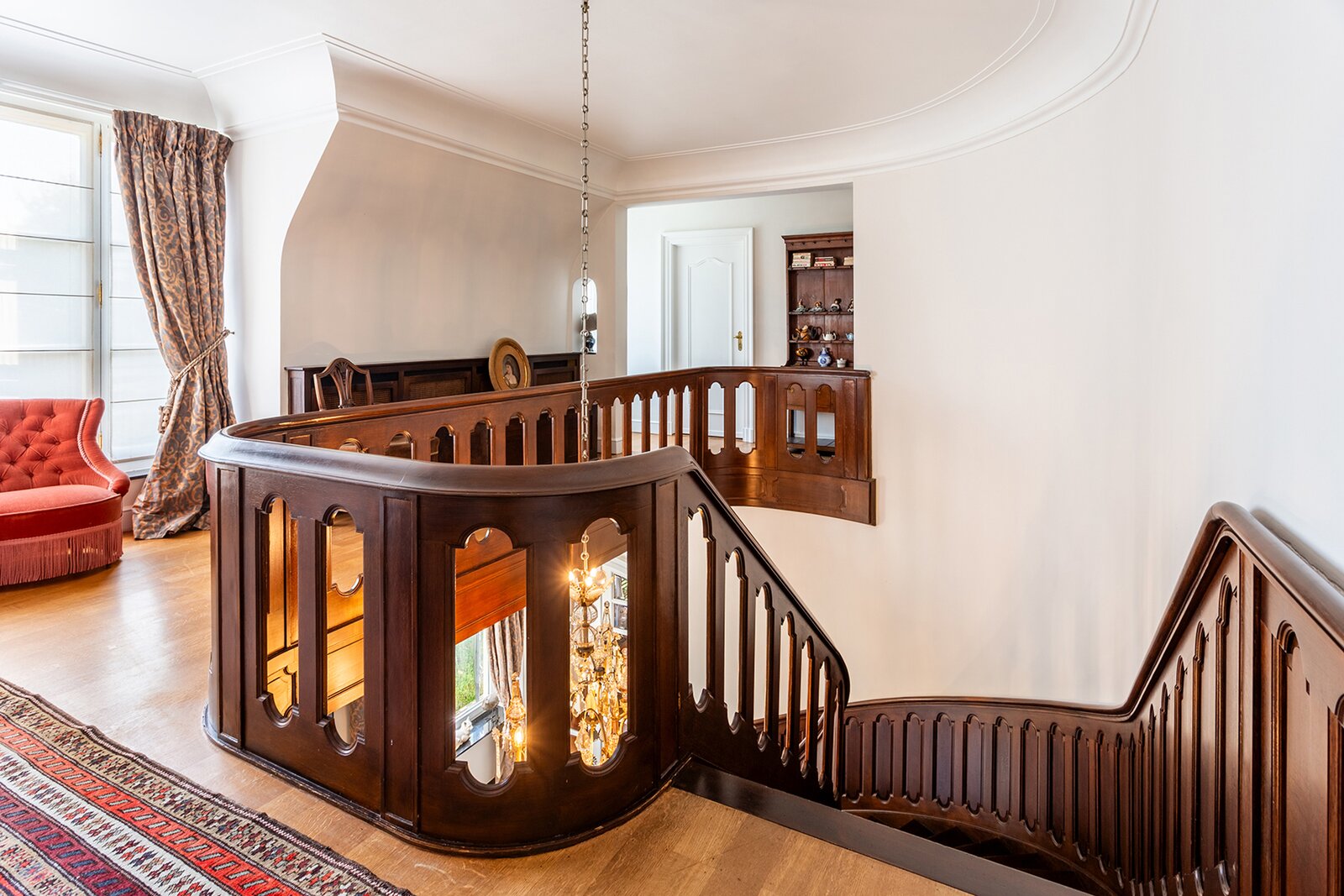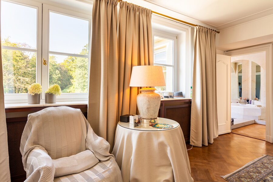 Voor extra comfort kunt u zowel met de trap als met de lift naar de eerste verdieping. Hier bevindt zich de royale master bedroom met een en-suite dressing en een luxueuze badkamer. Daarnaast zijn er drie ruime slaapkamers, elk voorzien van een eigen badkamer. Op deze verdieping is er ook een gezellige mezzanine (bibliotheekkamer) en een gastenslaapkamer met eigen zithoek en en-suite badkamer, wat zorgt voor een comfortabele en privéruimte voor gasten.