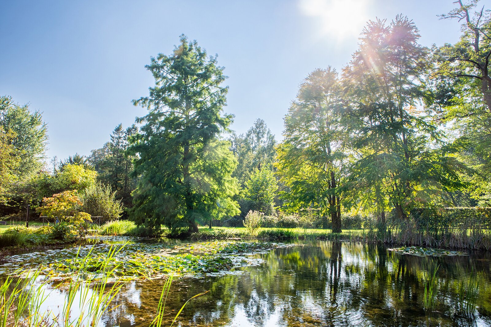 Buiten is de tuin een oase van rust, prachtig afgewerkt met verschillende terrassen, een vijver en fraai aangelegde paden, die samen zorgen voor een harmonieuze en ontspannen sfeer.