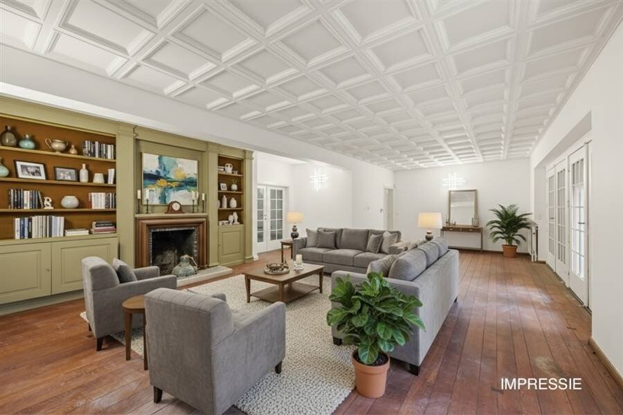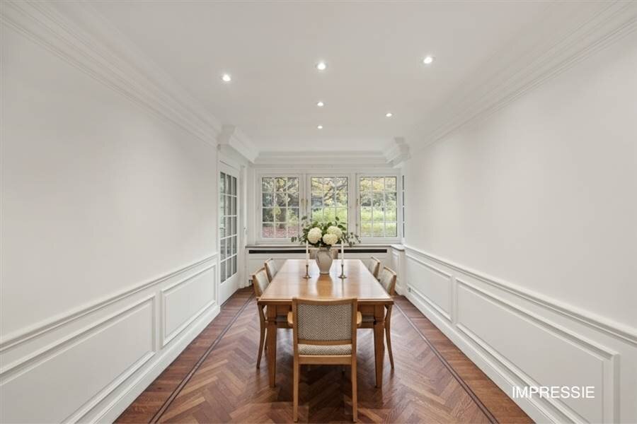 Bij binnenkomst treft u een statige inkomhal met een marmeren vloer, een gezellige zithoek rond open haard, vestiaire en gastentoilet. Via een deur komt u in het salon, dat ca. 65 m² beslaat en eveneens voorzien is van een open haard, een indrukwekkende leefruimte voor familie en gasten. Aangrenzend opent via een openslaande deur de royale orangerie van ca. 44 m² met parketvloer en een tweede open haard, hier geniet u het hele jaar door van tuinzicht en rust.