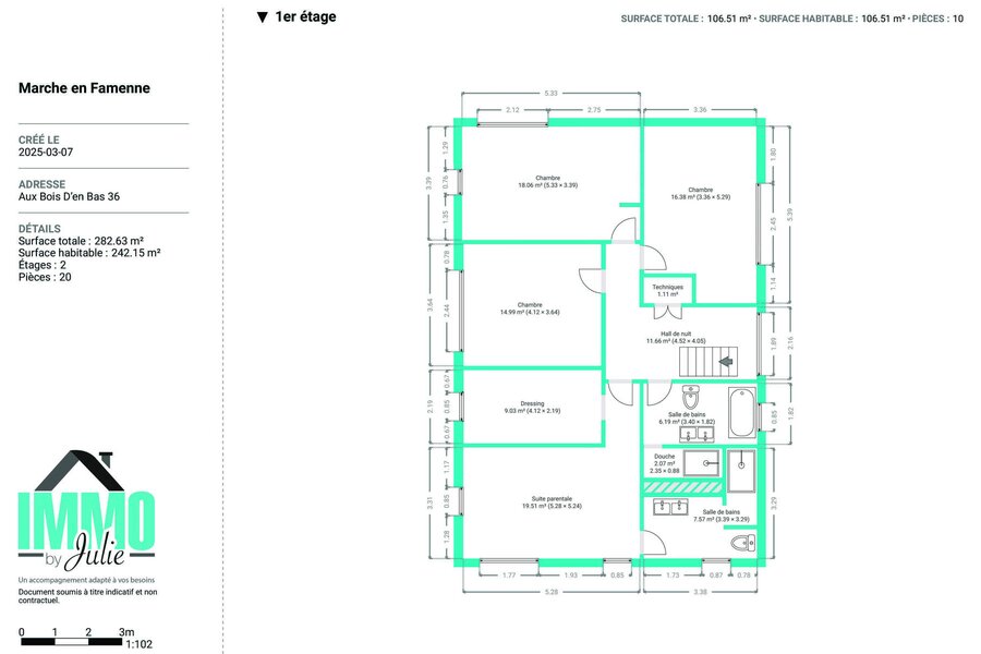 Een zeldzame troef maakt de begane grond compleet: een ruimte van 40 m² die oorspronkelijk bestemd was voor een vrij beroep (kantoor + wachtkamer), maar die gemakkelijk kan worden omgebouwd tot een gelijkvloerse master suite, afhankelijk van uw plannen.