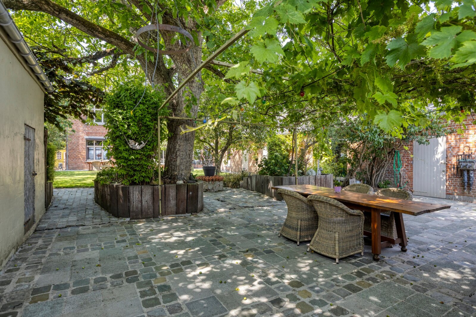 Exterieur: Magnifieke, groene tuin met verschillende terrassen en diverse fruitbomen - groot bijgebouw (ca. 100 m2) met zolder dienst doende als opslagplaats met garage - extra garage (ca. 40 m2) met hoge poort geschikt voor mobilhomes en camionettes.