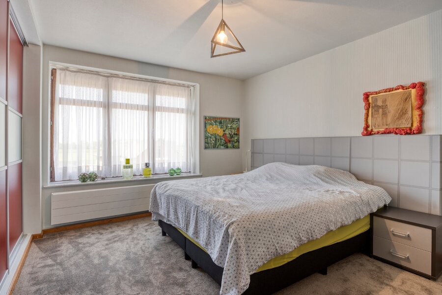Eerste verdieping: nachthal - 3 ruime slaapkamers met inmaakkasten - grote badkamer uitgerust met ligbad, inloopdouche, toilet en lavabomeubel.