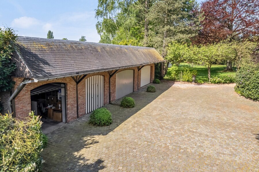 Verder zijn er nog aanwezig: grote garage voor 8 wagens, een tennisterrein, serre, prachtige oprijlaan en mooi aangelegde paden doorheen het domein.