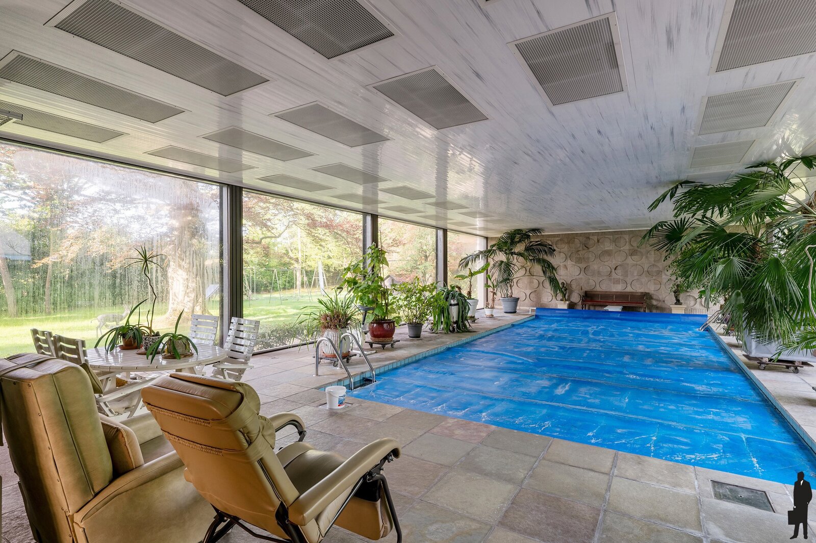 Het betreft de grootste villa op het domein, met een bewoonbare oppervlakte van 672 m² dat dateert uit 1946. Deze authentieke villa beschikt over een binnenzwembad, 6 slaapkamers, 2 badkamers en een grote tuin. Op deze woning is een renovatieverplichting (EPC E).