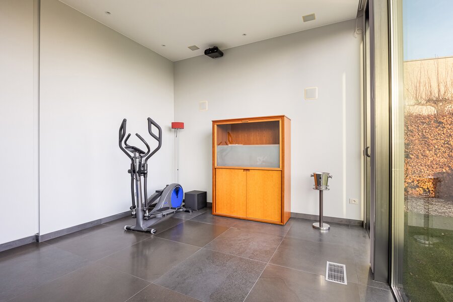 Aanpalend aan de living is de home cinema met beamer en top geluidsinstallatie.