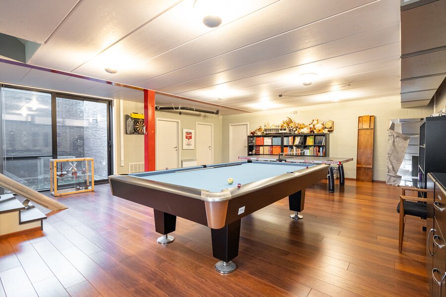 Omliggend aan de centrale ruimte zijn er diverse technische bergingen en een opslagkelder.