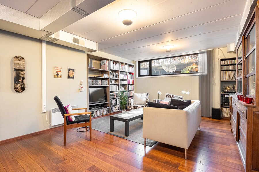 Momenteel is beneden een zithoek ingericht en een ontspannings/sport ruimte maar dat kan naar eigen wensen worden ingericht.