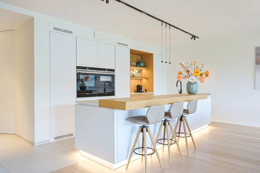 Inclusief twee private bergingen op verdieping -1 en toegang tot de gemeenschappelijke fietsenberging. Mogelijkheid voor het aankopen van een garagebox met plaats voor 4 auto's en een laadpaal.