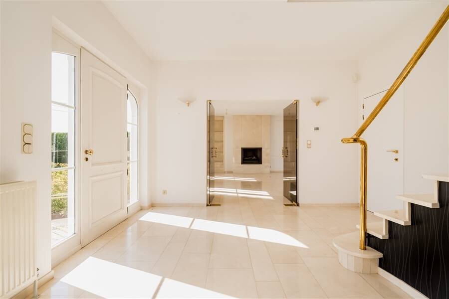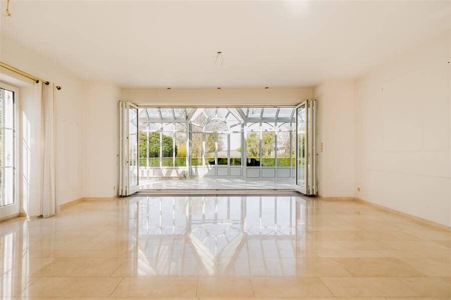 De royale leefruimte straalt klasse en comfort uit en sluit naadloos aan op een elegante orangerie. Hier geniet je van een zonnig terras en een adembenemend uitzicht op de groene omgeving.