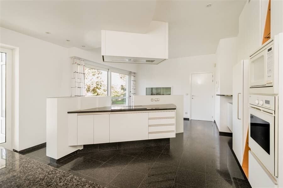 De volledig ingerichte keuken is voorzien van alle moderne toestellen en biedt samen met de ruime berging/wasplaats en dubbele garage met automatische poorten optimaal gebruiksgemak.