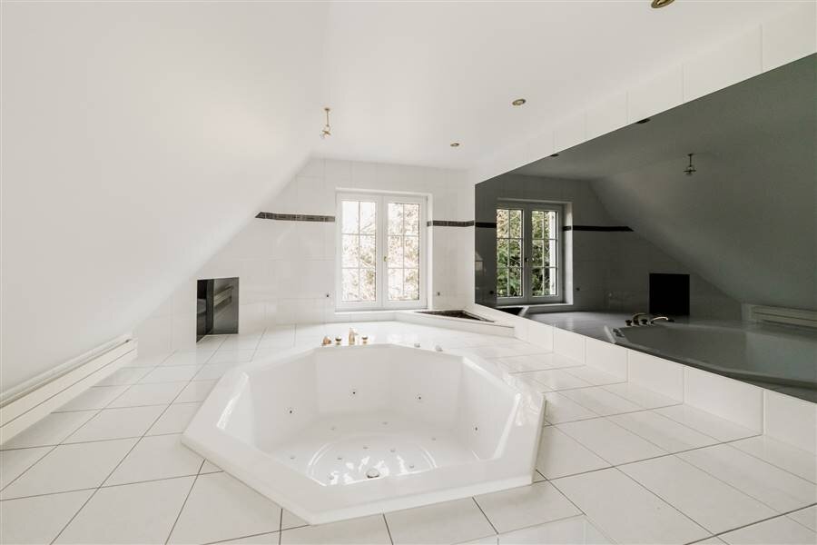 De master bedroom beschikt over een luxueuze badkamer met bubbelbad, inloopdouche, stijlvol lavabomeubel en apart toilet.