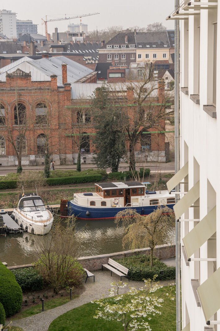 Dit uitzonderlijk appartement van maar liefst 140 m² is gelegen in de residentie Mozart, onderdeel van het nieuwbouwproject Leiekouter naar de hand van 360 Architecten. Dit is een uniek en exclusief woonproject gelegen tussenin de Nederkouter, het historische centrum van Gent, en anderzijds het rustige water van de Leie. De residentie en zijn locatie kent een rijkelijke geschiedenis als toenmalige pianofabriek “Van Hyfte”, daterende van de 18de eeuw. De binnentuin van de residentie werd aangelegd door de gerenommeerde landschapsarchitect Martin Wirtz en is een ware groene oase in het hartje van Gent met rechtstreeks contact met de Lindeleie. Zo heeft de residentie een eigen aanlegsteiger.
