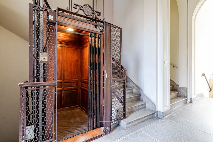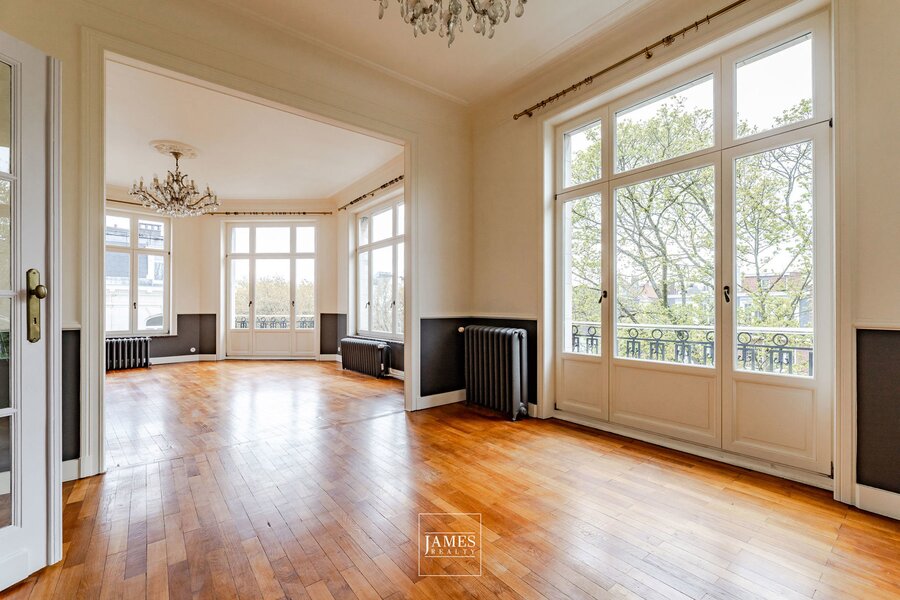 Het appartement geniet van veel lichtinval en biedt mooie volumes met een klassieke indeling, bestaande uit ruime leefruimtes, een aparte keuken, drie slaapkamers en twee badkamers. Het geheel vormt een kwalitatieve basis, die kan worden gerenoveerd volgens hedendaagse normen.