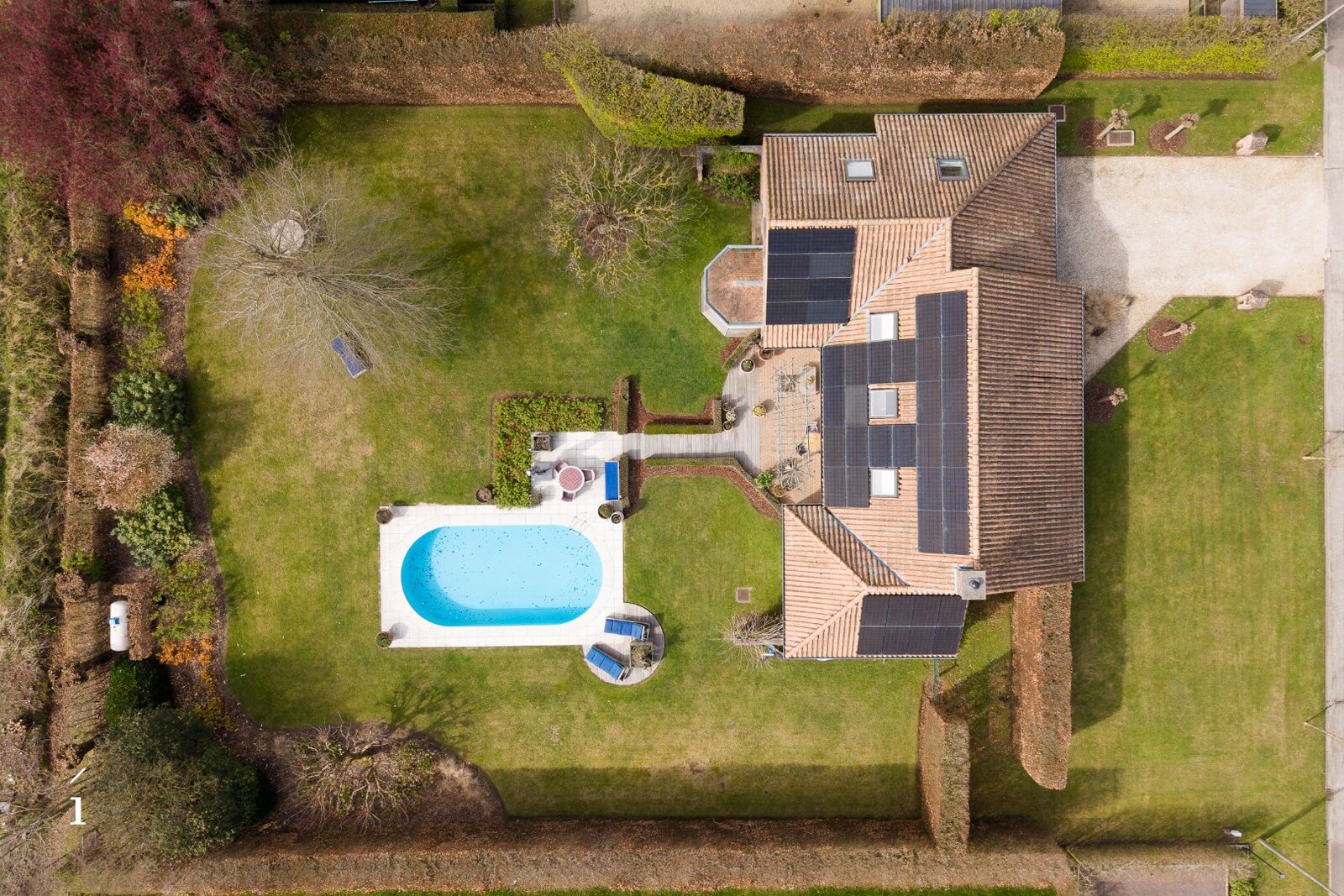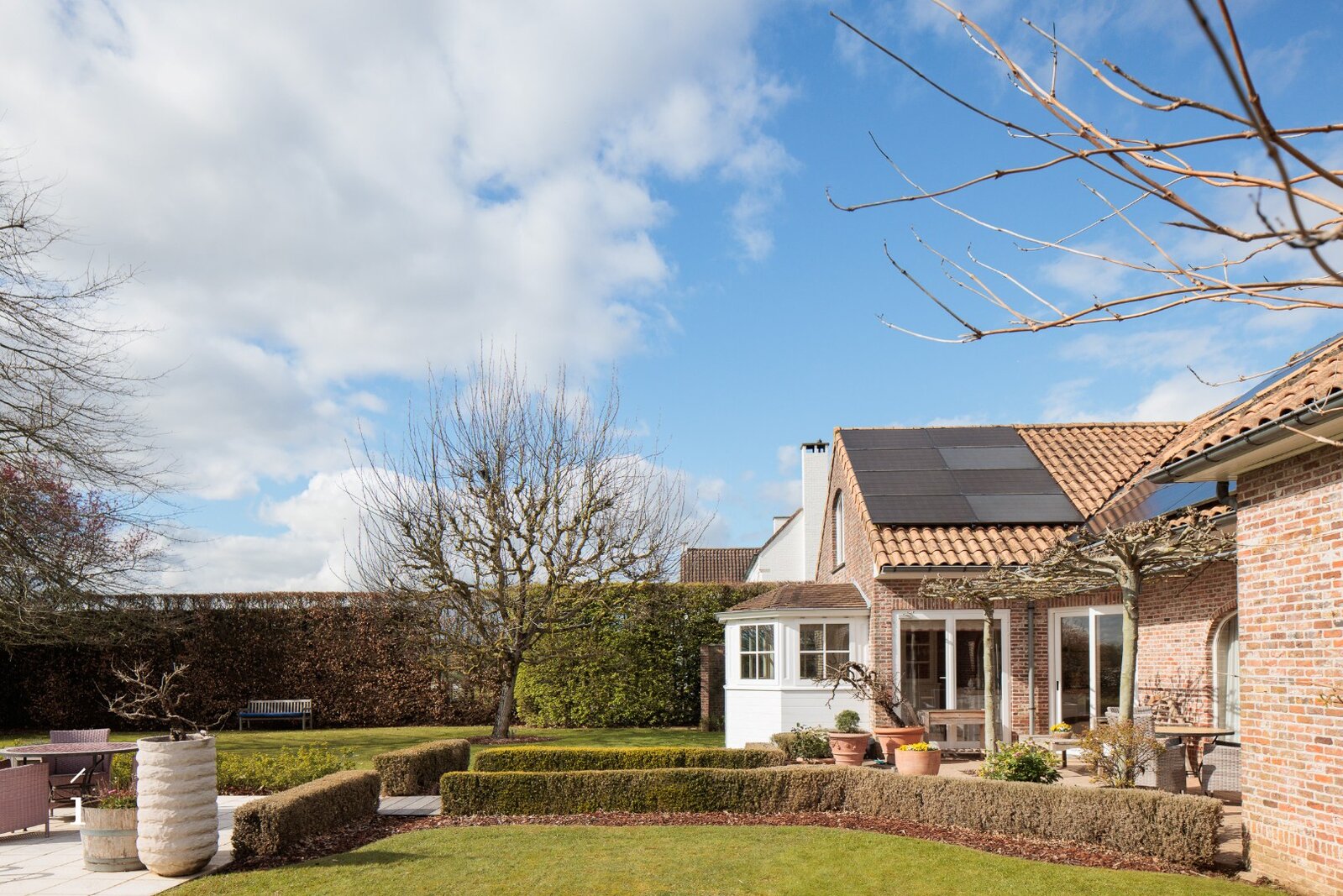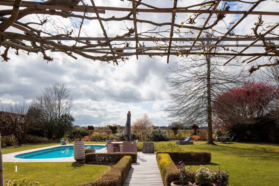 De buitenomgeving is minstens even indrukwekkend. De tuin is aangelegd in een prachtige, zuiderse Provençaalse stijl en biedt maximale privacy. Met drie terrassen vindt u op elk moment van de dag een zonnig of schaduwrijk plekje. Volwassen bomen zoals een notelaar, Katalpa en Amerikaanse eik geven de tuin extra karakter en rust. Het verwarmde zwembad vormt de perfecte plek om af te koelen tijdens warme zomerdagen.