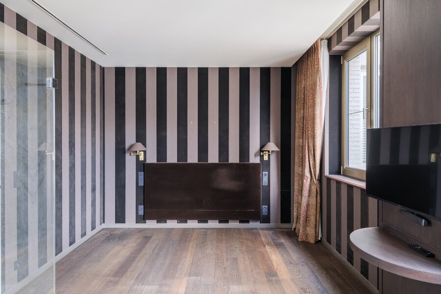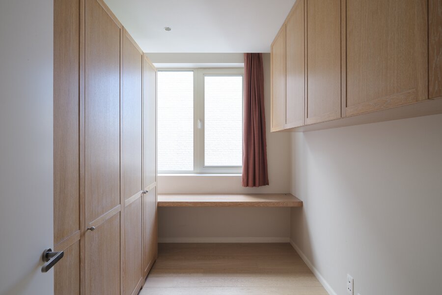 Het appartement omvat een ruime hoofdslaapkamer met ensuite badkamer en een tweede, compactere kamer die kan dienen als dressing, gastenkamer of bureau. De woonst biedt een zeer aangename woonervaring dankzij de hoge afwerkingsgraad en de doordachte indeling.