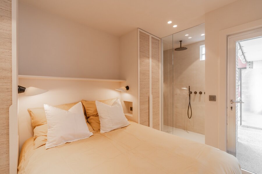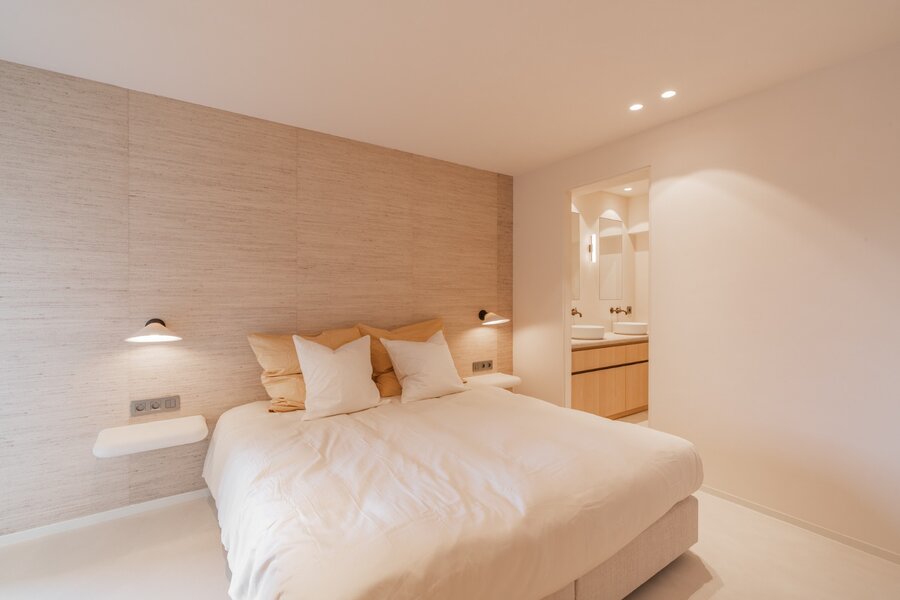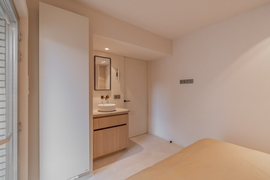 2 volwaardige slaapkamers, beide met elk hun eigen sanitaire ruimte, bij de masterbedroom hoort een badkamer met dubbele lavabo, ligbad en toilet. Eén slaapkamer heeft een aangenaam zeezicht. Derde kamer ingericht met lollipop-stapelbed.