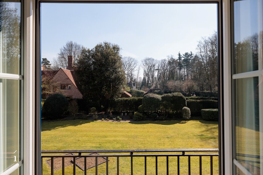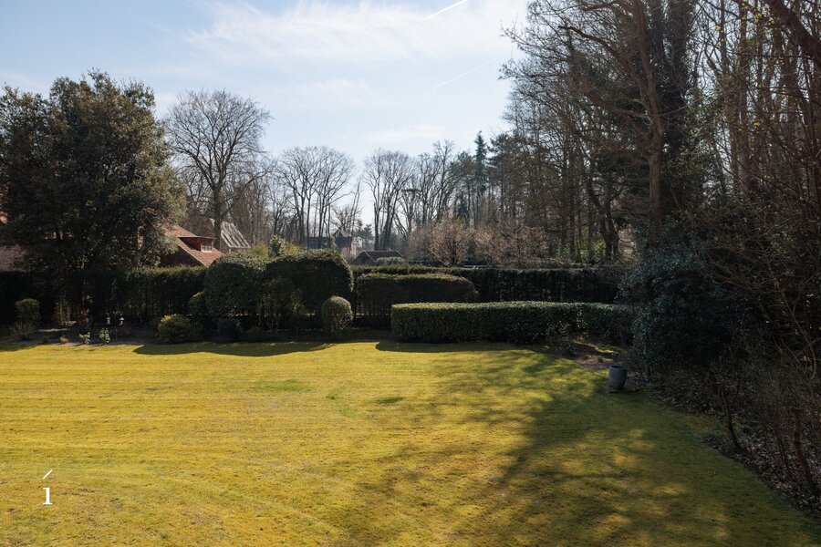 De tuin vormt een rustige en zonnige omgeving, met volwassen bomen en een mooi dieptezicht. Hier geniet u in alle discretie van het buitenleven, op een van de meest residentiële straten van Latem.