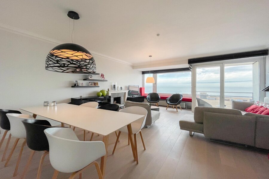Dit lichtrijke en ruime appartement geniet van een topligging op de Zeedijk in het Zoute, vlakbij het prestigieuze Albertplein, met een prachtig frontaal zeezicht.