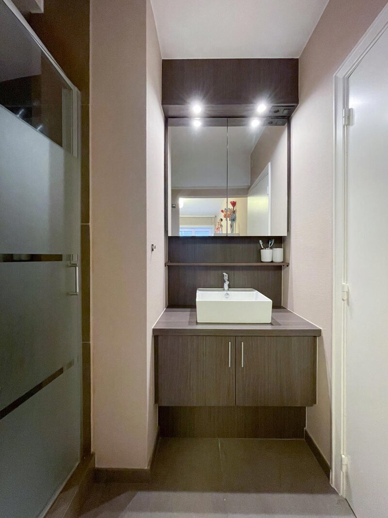 Achteraan bevinden zich drie volwaardige slaapkamers, elk voorzien van ingemaakte kasten en met toegang tot het terras aan de achterzijde. De master bedroom beschikt over een dressing en een ensuite badkamer met ligbad, douche, dubbele lavabo en toilet. De tweede slaapkamer heeft een eigen douchekamer met douche en lavabo. Daarnaast is er ruimte voorzien voor wasmachine en droogkast.