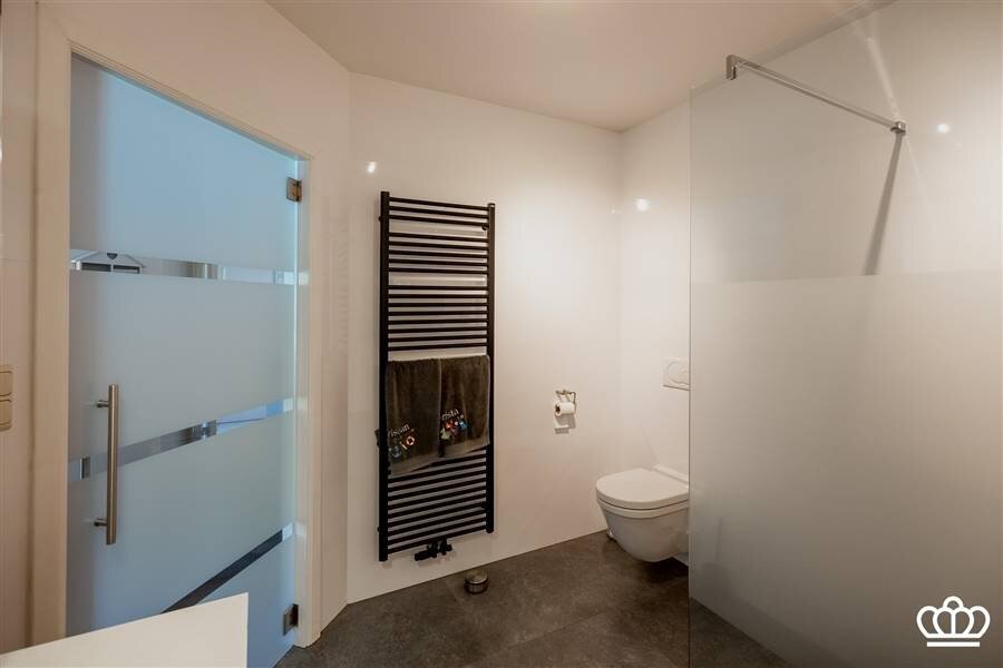 Op dit verdiep bevindt zich ook de masterunit met ensuite badkamer, uitgerust met een ruime inloopdouche, toilet en lavabo. Aansluitend aan de slaapkamer is er een dressing.