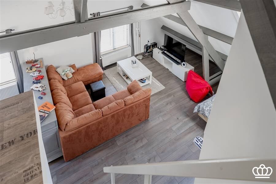 Daarnaast is er een aparte studio op deze verdieping, ingedeeld in een ruime zithoek, bureauhoek en slaapgedeelte. Via een vaste trap bereikt u nog een mezzanine/vide.
