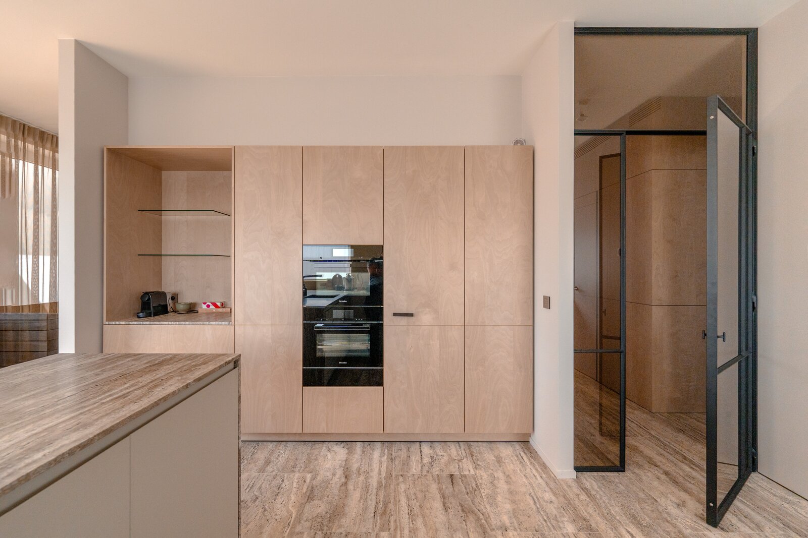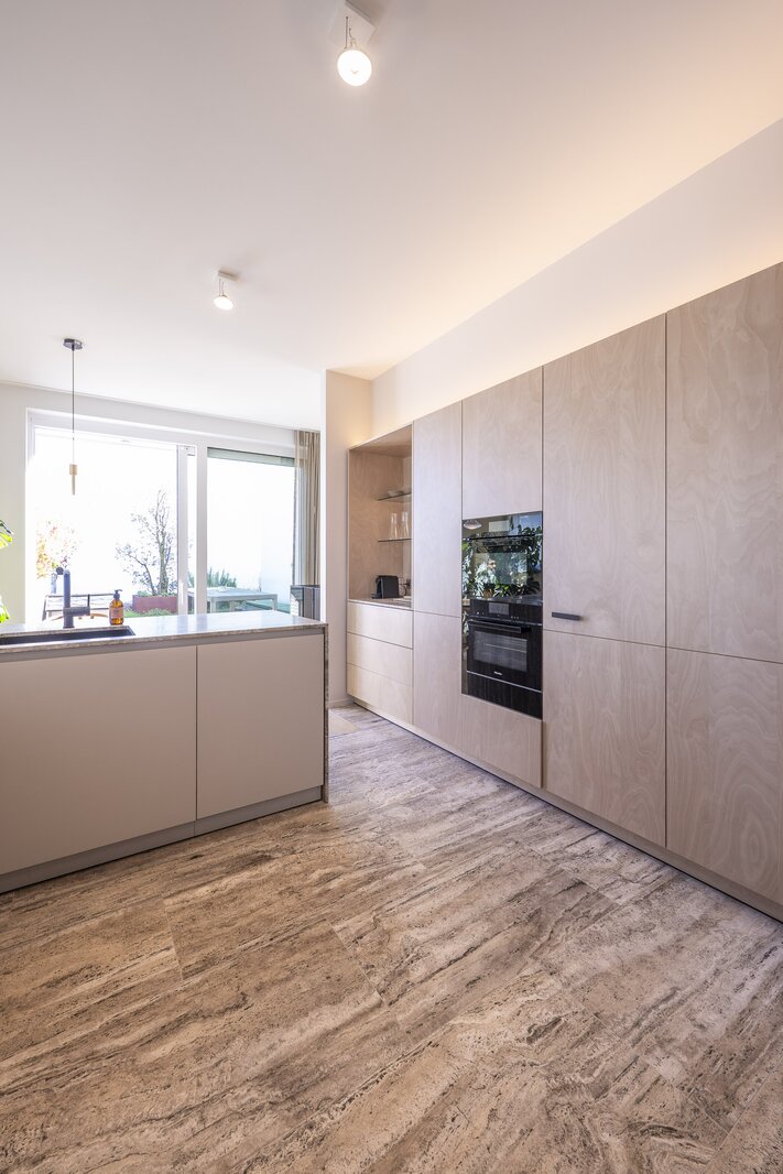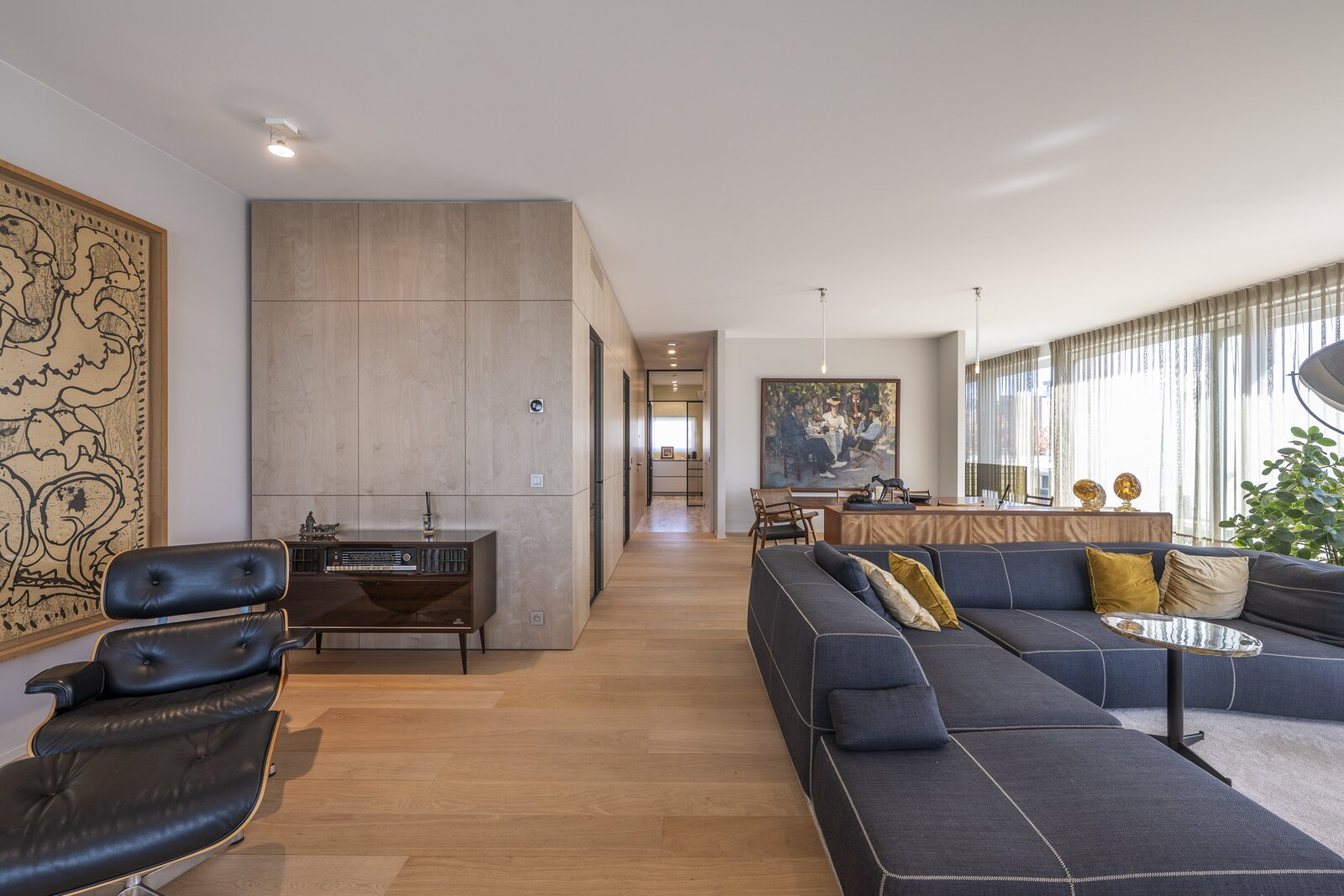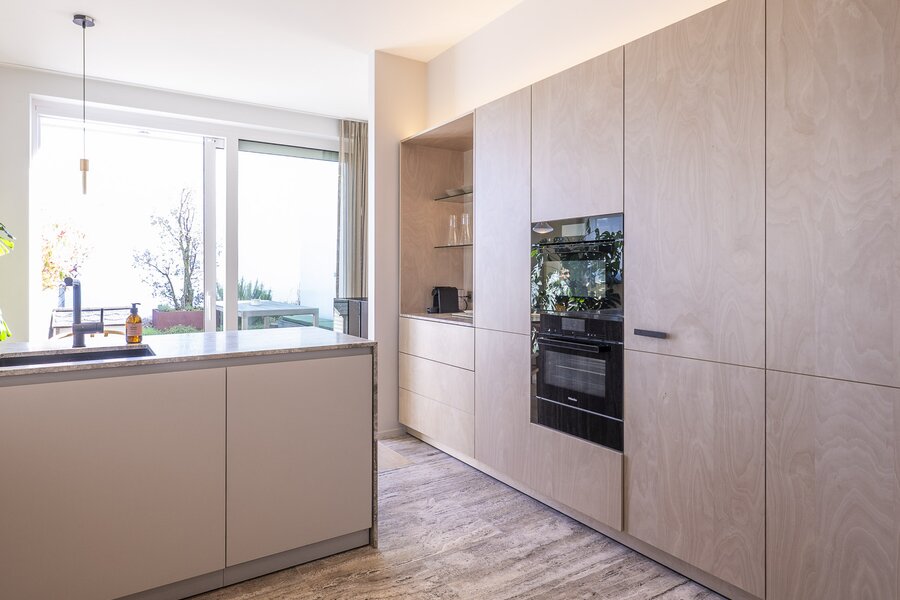 Materialen werden niet gekozen om te imponeren, maar om te blijven. Warm parket, verfijnd maatwerk en een uitgepuurde vormentaal brengen een vanzelfsprekende harmonie.