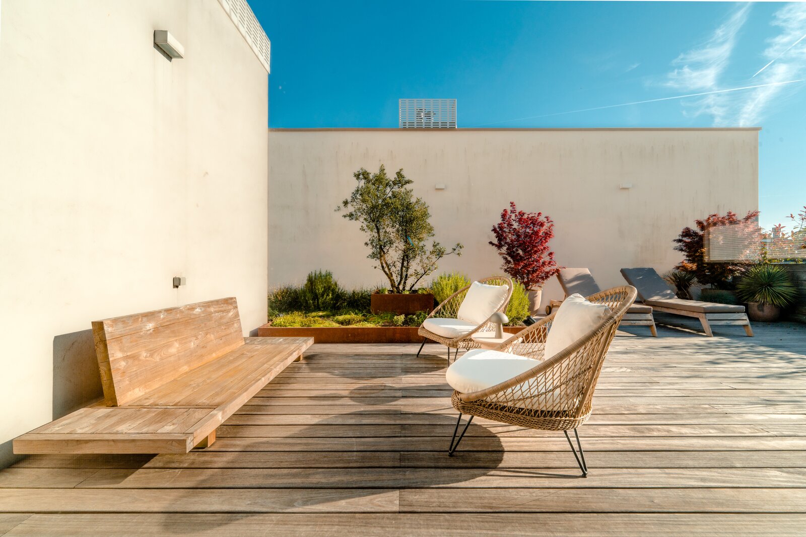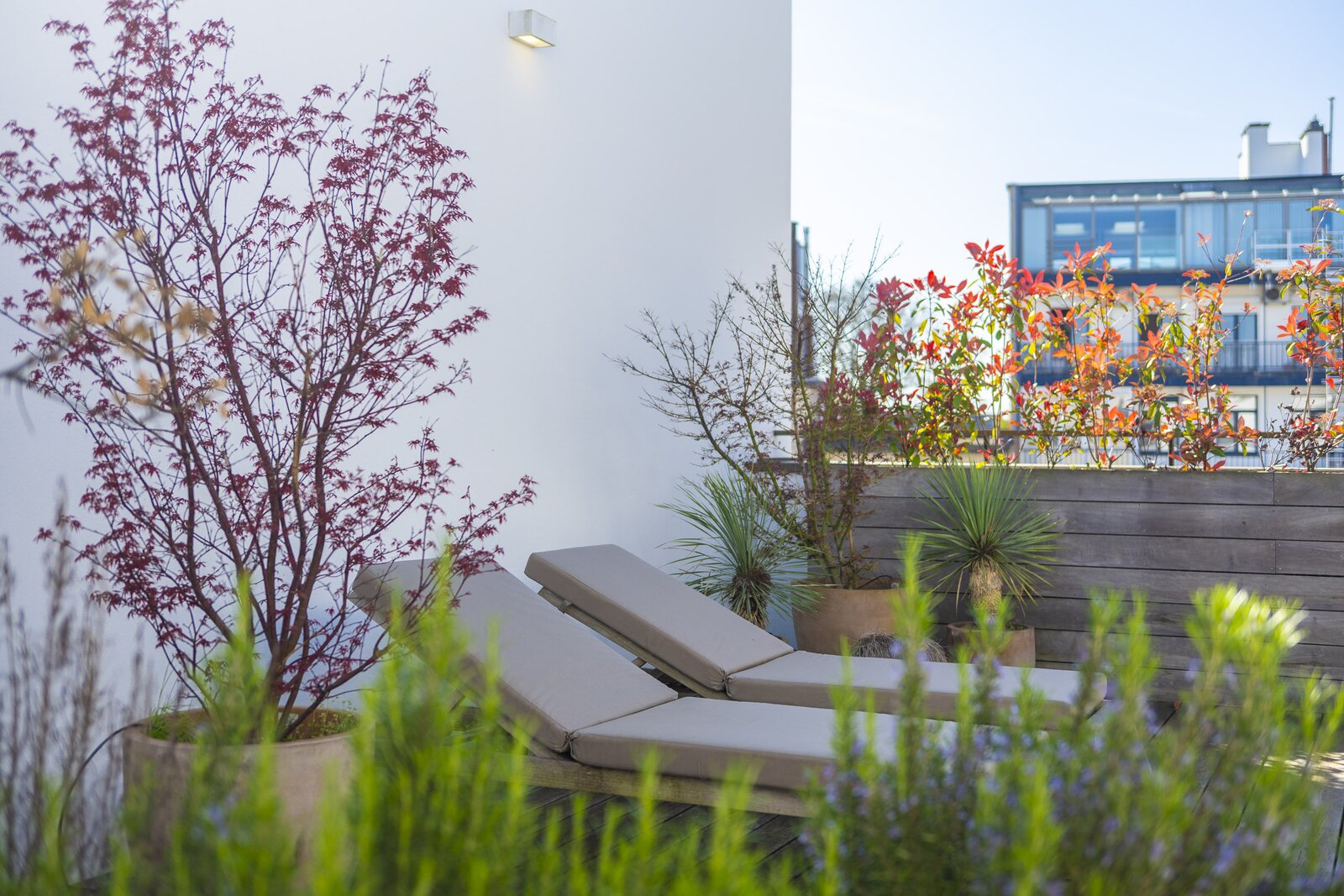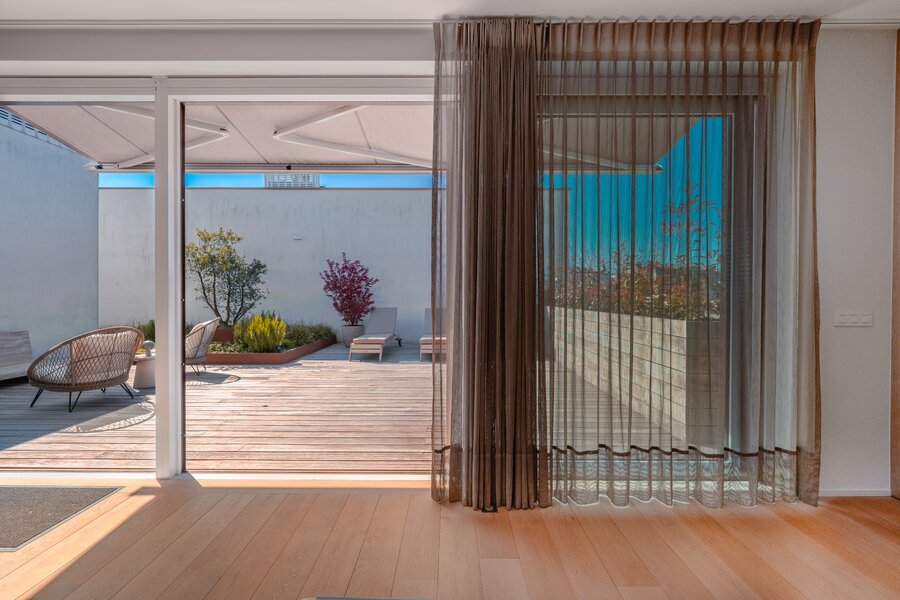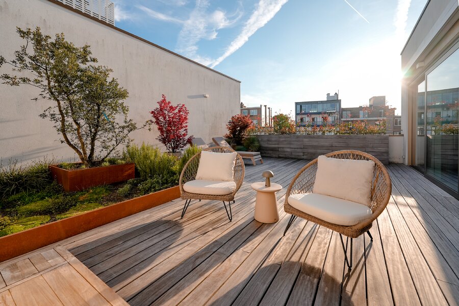 De terrassen, samen goed voor meer dan 80 m², vormen een volwaardige uitbreiding van de leefruimte.