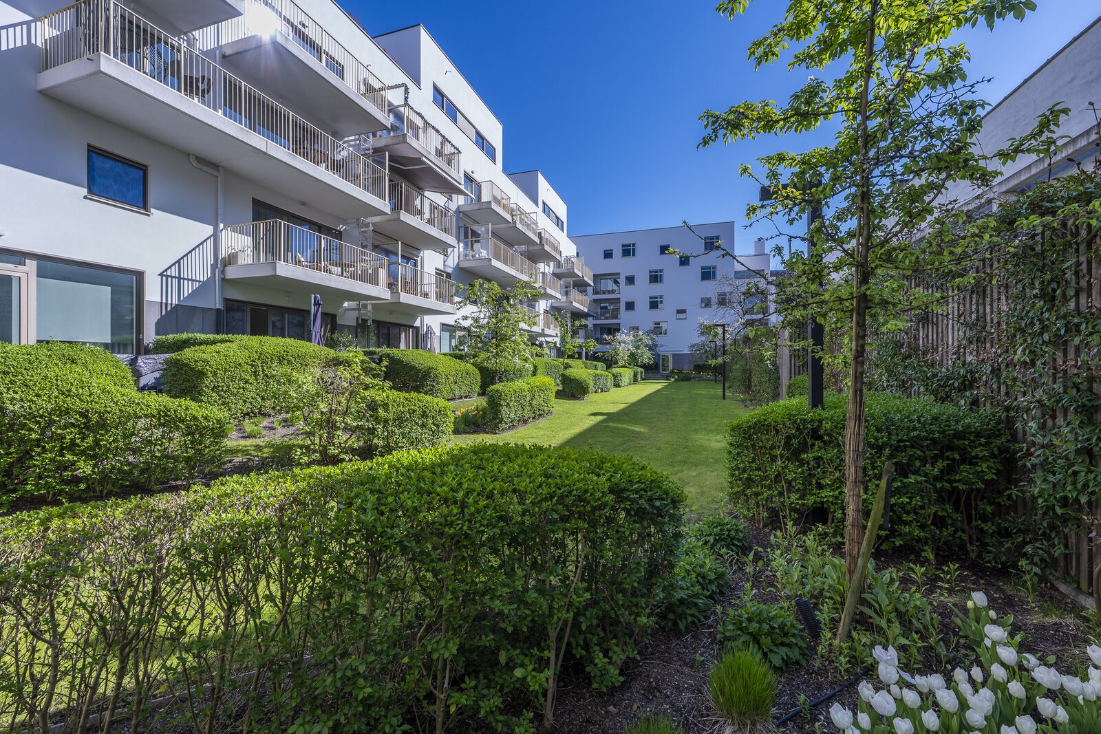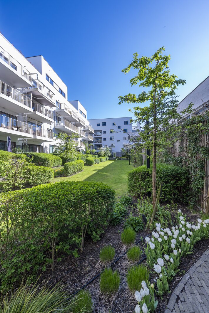 “Leopold” onttrekt zich bewust aan de blik. Achter een discrete architectuur en binnen een afgesloten residentie met aangelegde binnentuin, ontvouwt zich een woonomgeving waar stilte en verfijning primeren.