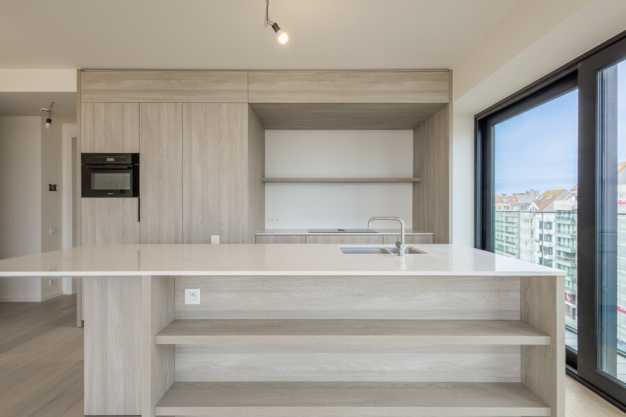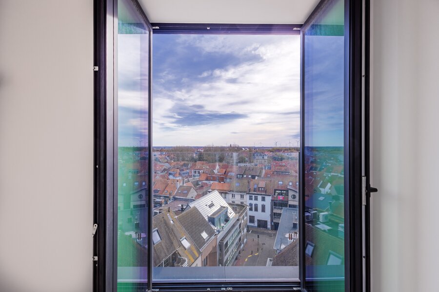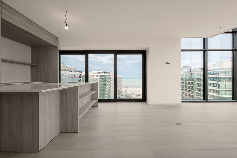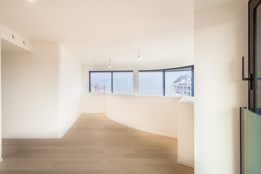 Ruime mezzanine met uitzonderlijk uitzicht over Knokke en de zee, gelegen op een toplocatie waar licht, ruimte en panorama centraal staan.