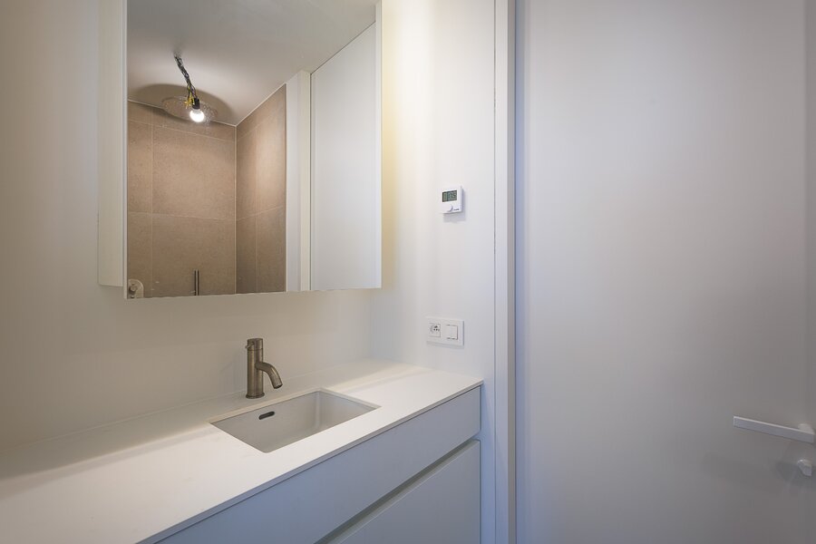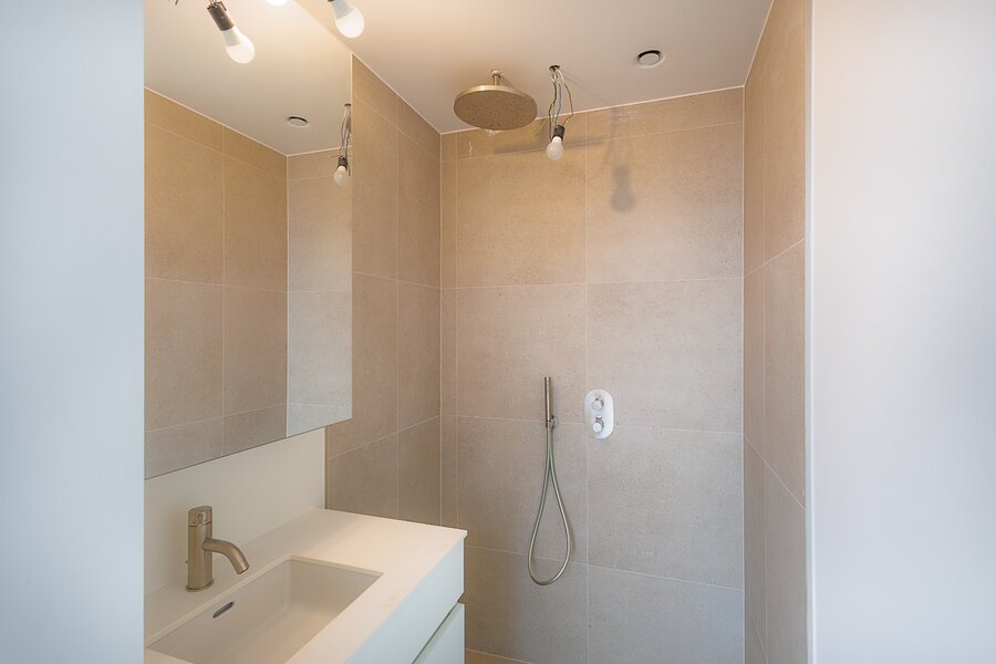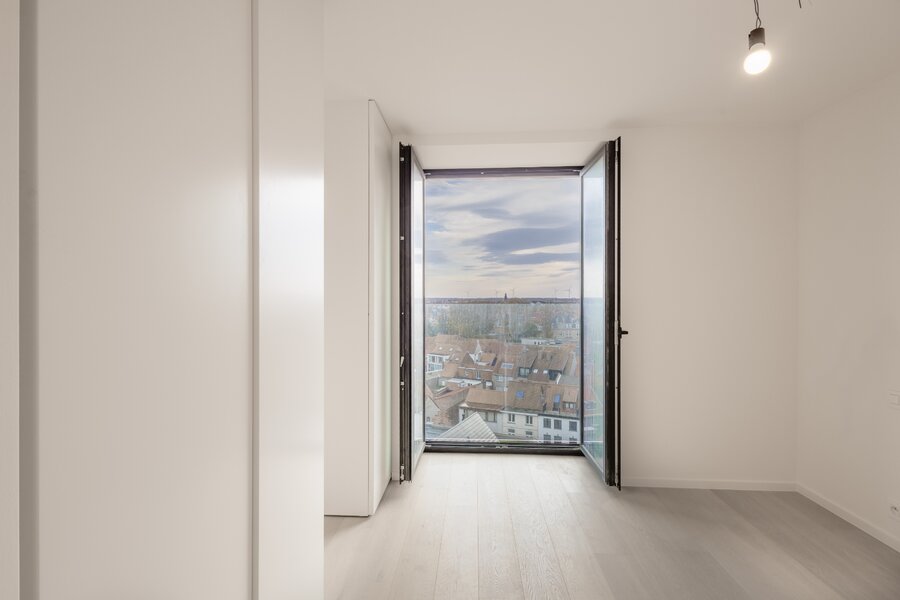Deze eigendom biedt een bijzonder aangename woonbeleving dankzij de grote raampartijen die zorgen voor een overvloed aan natuurlijke lichtinval en een open gevoel doorheen de volledige woonruimte. De open keuken sluit naadloos aan bij de leefruimte en versterkt het moderne en luchtige karakter van het appartement.