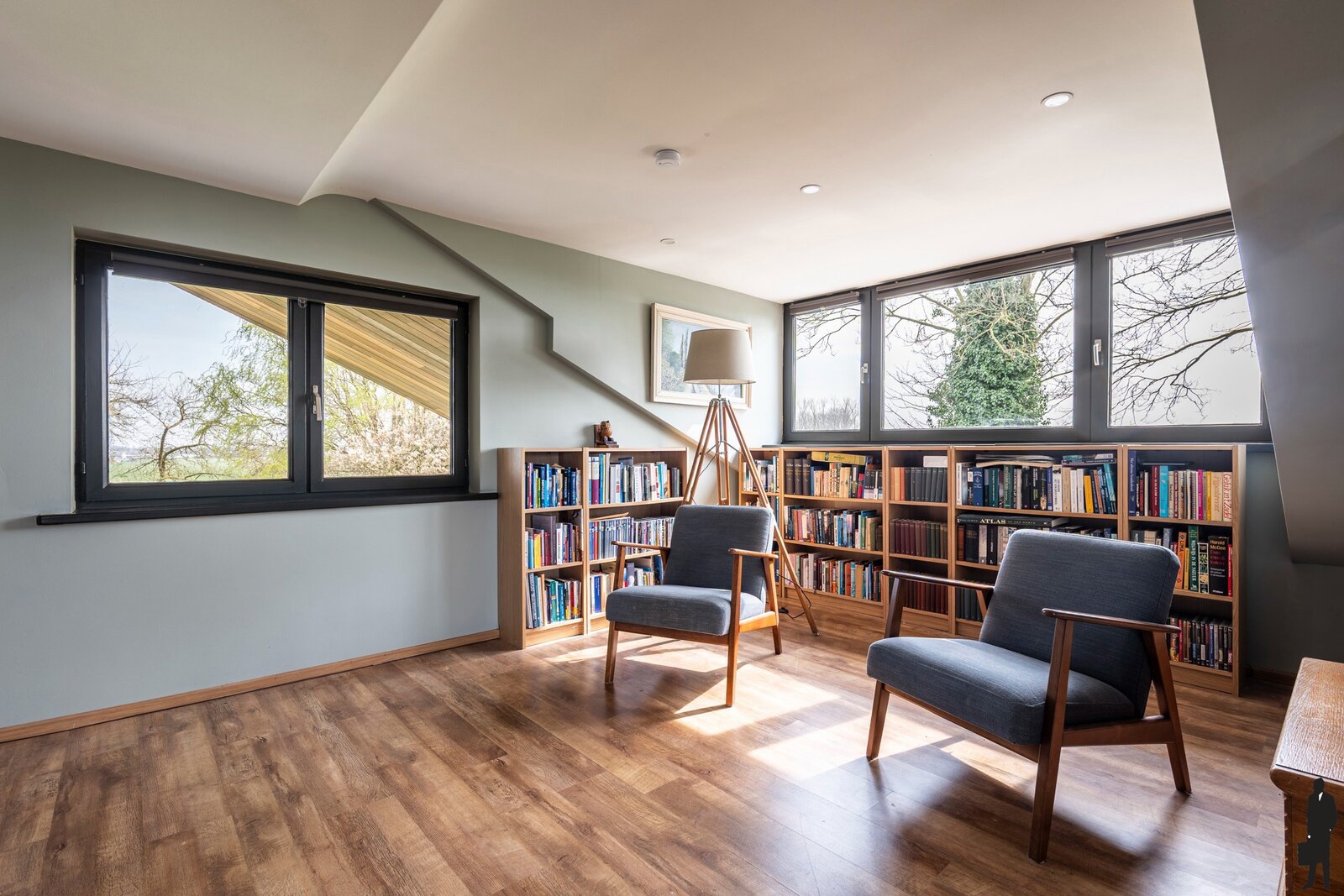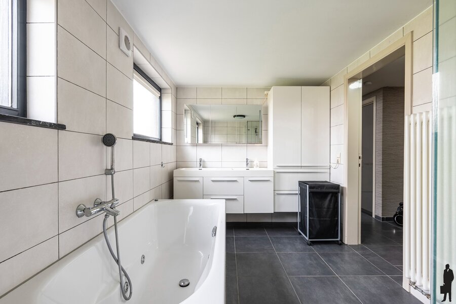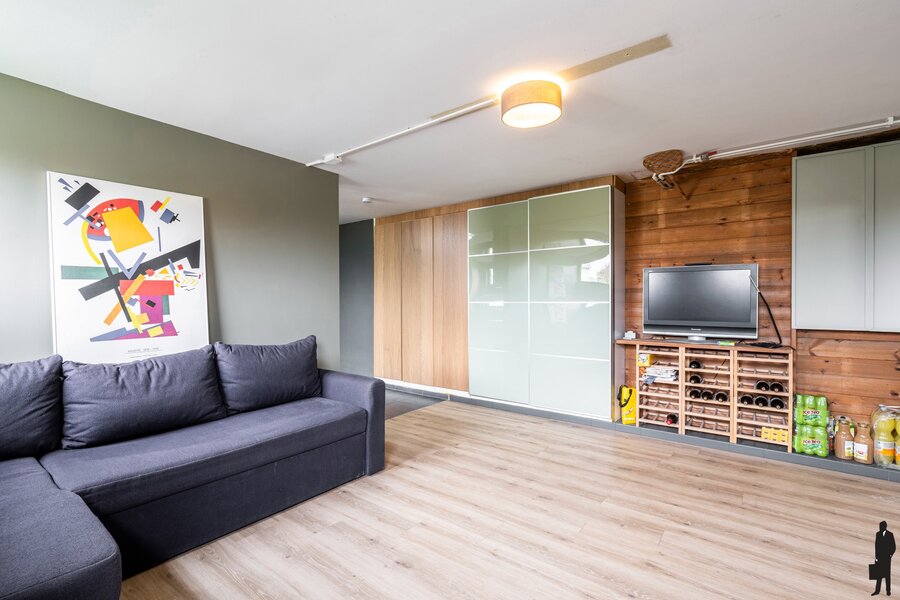 Binnenin vinden we een ruime indeling met vier volwaardige slaapkamers, aangevuld met een vijfde kamer op het gelijkvloers, die perfect kan dienen als slaapkamer, bureau of onderdeel van de aanwezige studio.