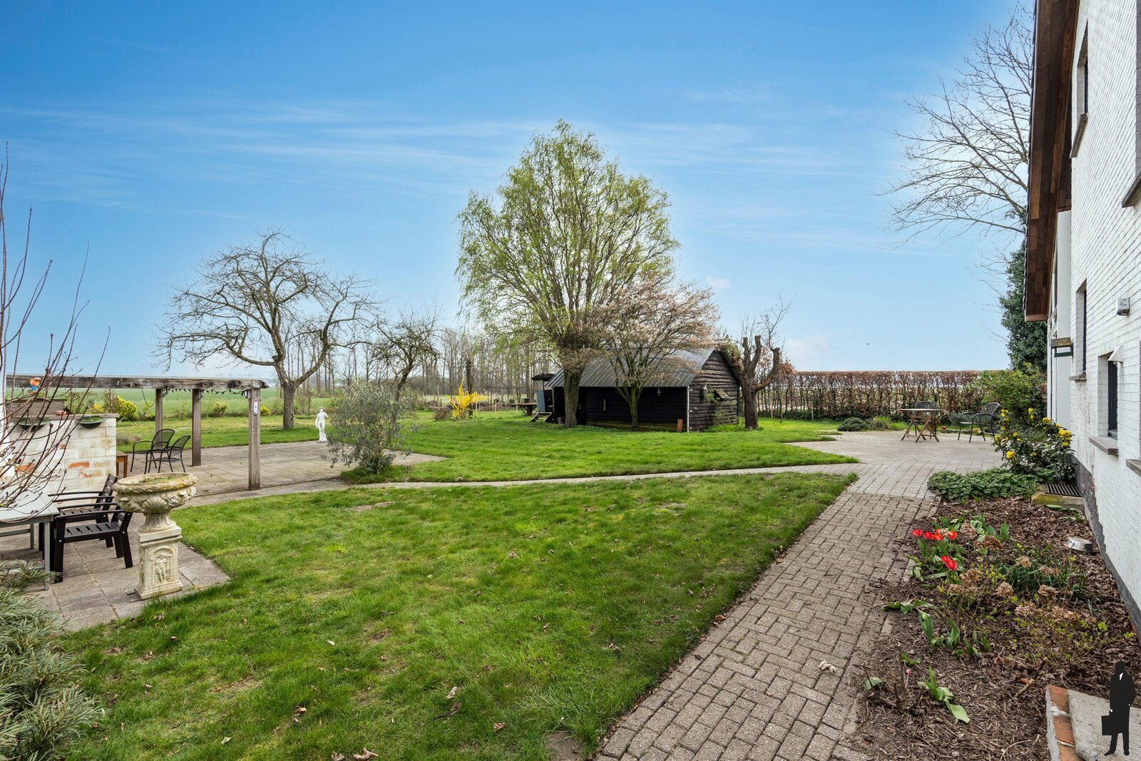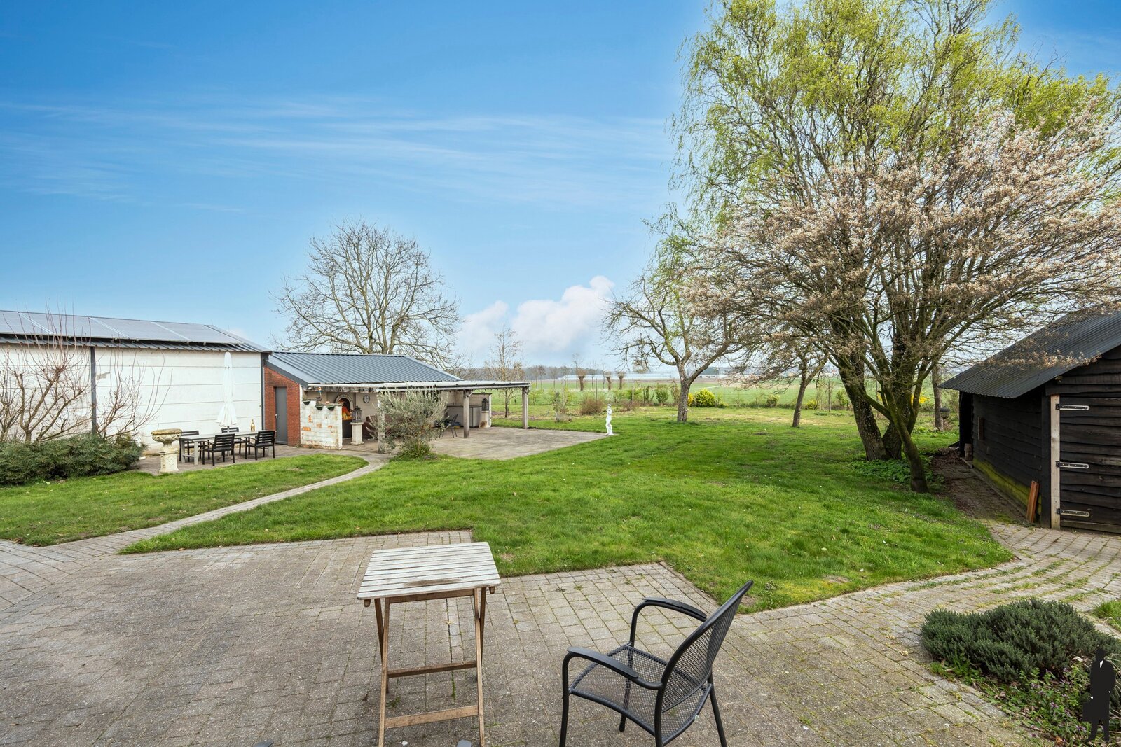 Het perceel is volledig omheind, wat zorgt voor extra privacy en veiligheid. Op het terrein bevindt zich bovendien een vergund bijgebouw, ideaal als opslagruimte, hobbyruimte of werkatelier.